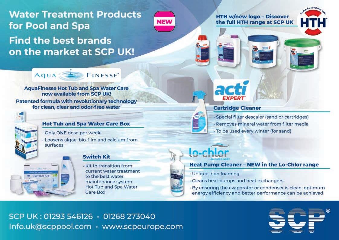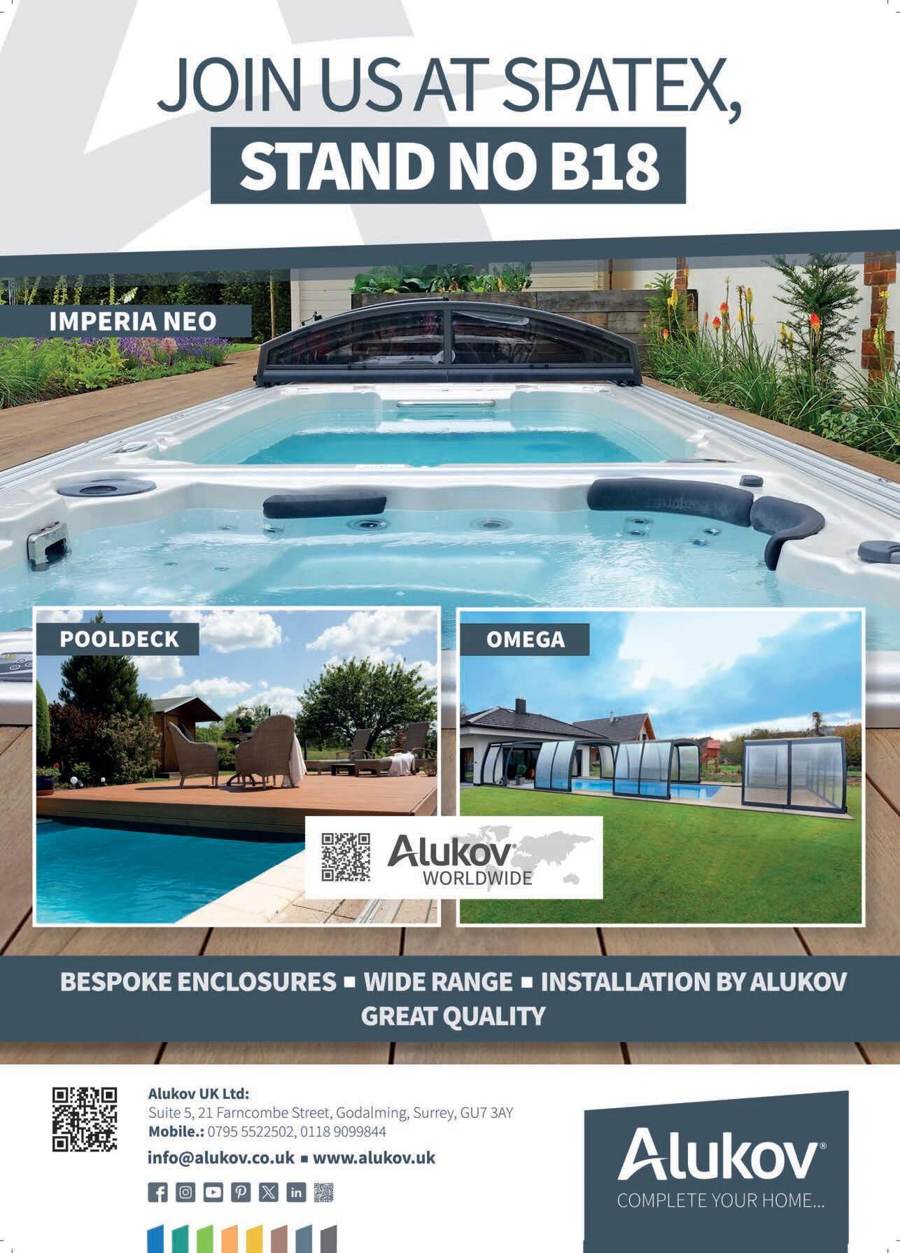 Aqua Publishing Ltd accepts no liability for any insert, display or classified advertisement included in Swimming Pool News. While every reasonable care is taken to ensure that all advertisers are reliable and reputable, Swimming Pool News can give no assurance they will fulfil their obligations under all circumstances. The views expressed in the articles in Swimming Pool News are the contributors’ own. All rights reserved. Copyright for all materials published in SPN remains with the publishers. Material contained in this publication is not to be reproduced in whole or in part without the prior permission of Aqua Publishing Ltd. Aqua Publishing also publishes: What Pool & Hot Tub magazine – our sister publication – is the only consumer magazine in the UK