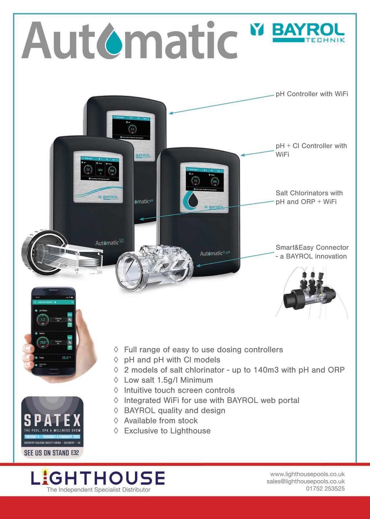 Swim spas – mid and high-end models • Automatic pool covers (domestic sector) • One-piece and breglass pools • Pool liners and systems Plus much, much