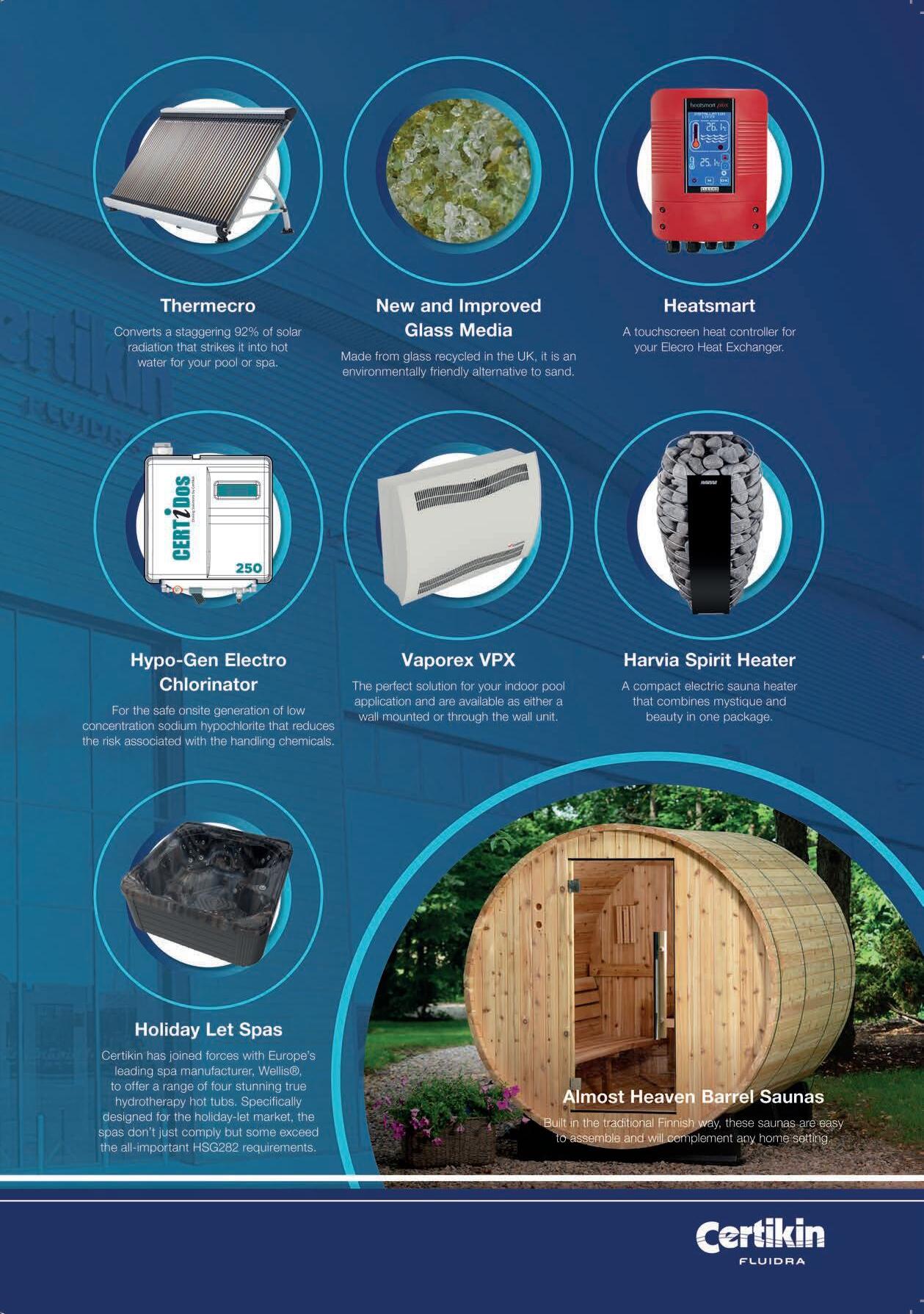 • Water testing products • Lighting • The alternative approach – no and low chlorine solutions • Heat pumps • Dehumidi cation