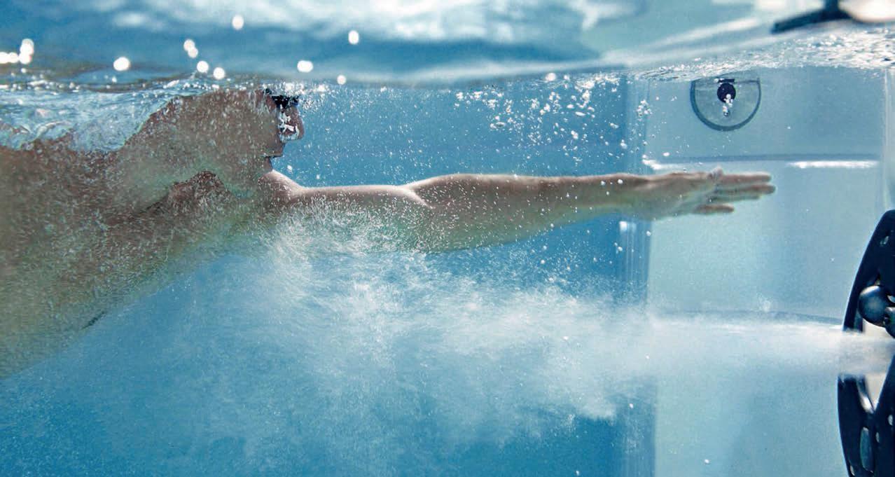 German manufacturer UWE invented the counter-current system in 1967 and their creation has revolutionised the traditional swimming pool. By regulating the current, even small pools can become really exciting –and that goes for trained athletes as well.