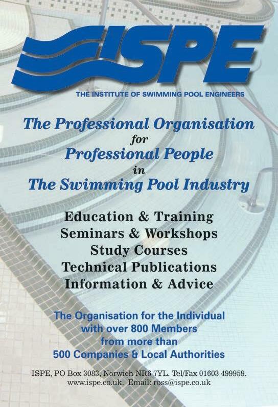 Aqua Publishing Ltd accepts no liability for any insert, display or classi ed advertisement included in Swimming Pool News. While every reasonable care is taken to ensure that all advertisers are reliable and reputable, Swimming Pool News can give no assurance they will ful l their obligations under all circumstances. The views expressed in the articles in Swimming Pool News are the contributors’ own. All rights reserved. Copyright for all materials published in SPN remains with the publishers. Material contained in this publication is not to be reproduced in whole or in part without the prior permission of Aqua Publishing Ltd.