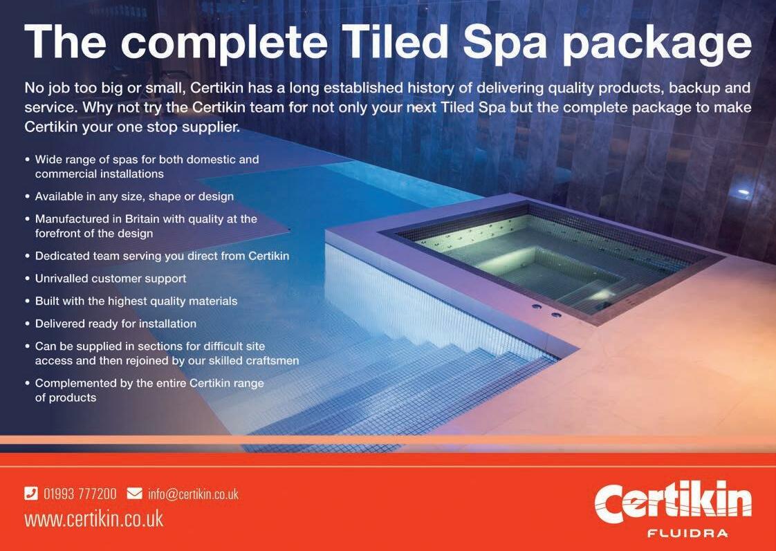 Talking of sectors, we have a piece on tiled spas and swim spas – a niche but growing sector which offers stunning bespoke and durable solutions for both high-end domestic and commercial markets alike.