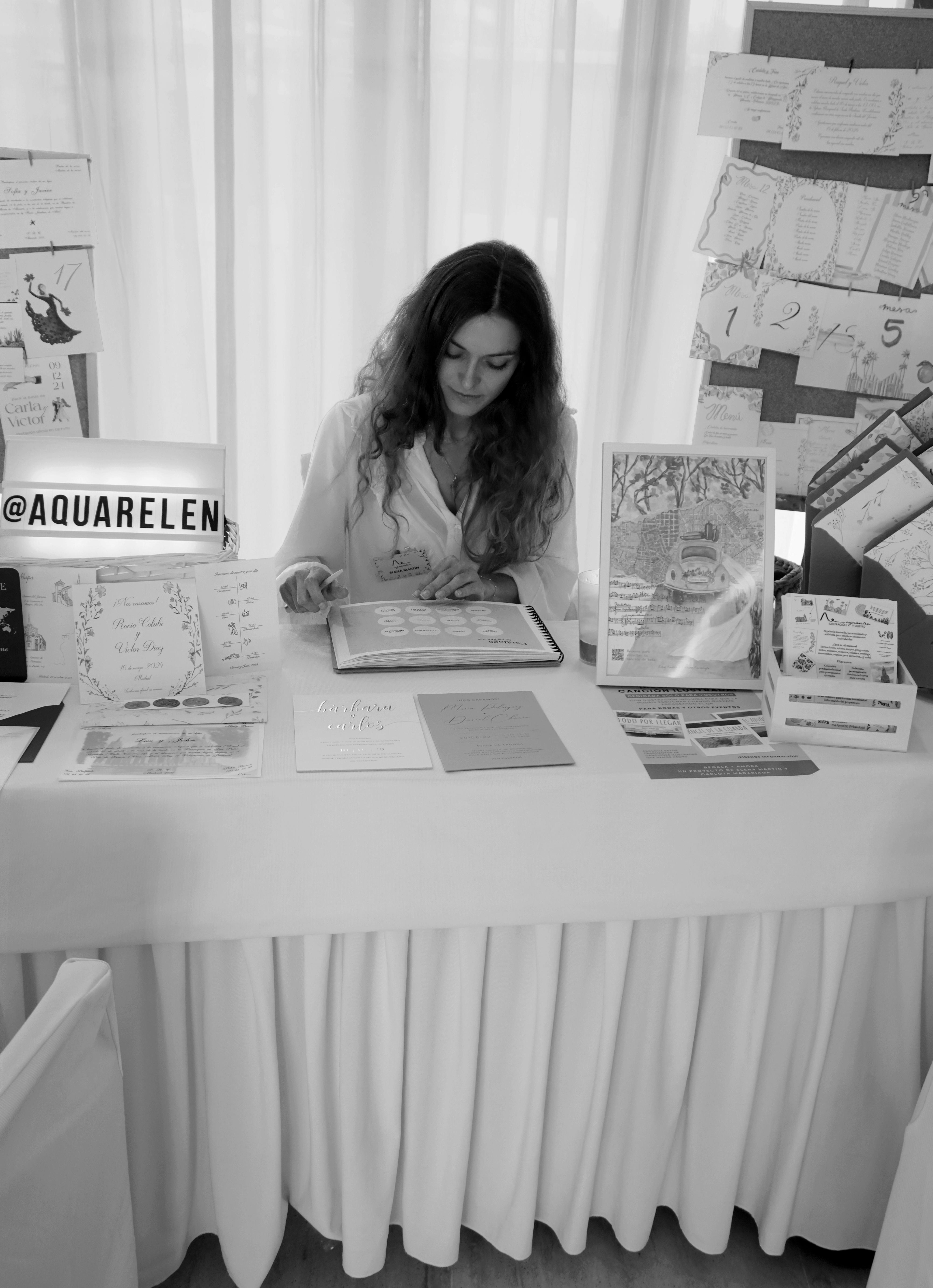 Me llamo Elena Martín y soy la fundadora de Aquarelen. Desde Los Ángeles y Madrid, diseño e ilustro papelería personalizada para eventos y regalos especiales.