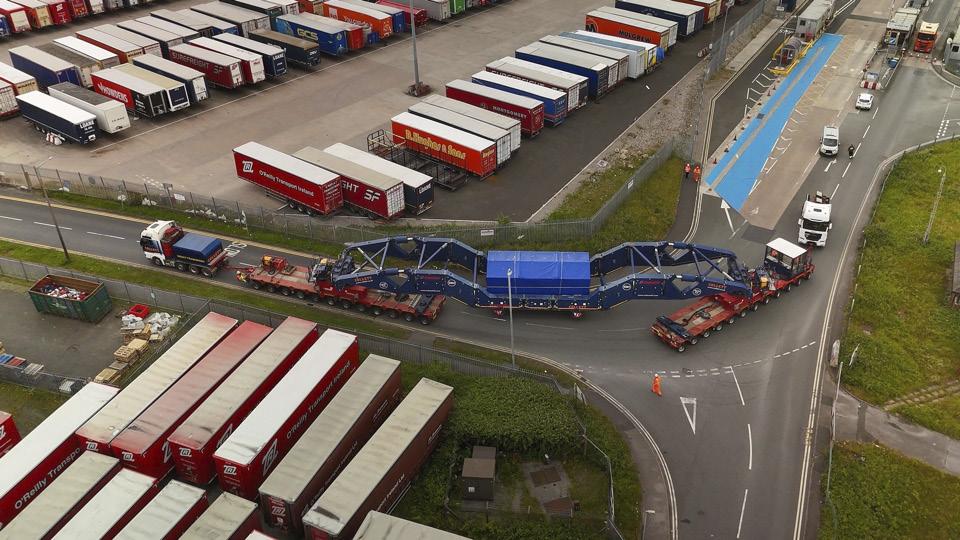Collett & Sons Ltd always share the most amazing photographs, and this latest one followed the completion of transporting a 234 Tonne Stator from Heysham Port to the Gretna Grid Stability Facility in Scotland. The stator was transported from Heysham utilising their 350Te capacity girder frame. Reaching the transhipment point, the stator was then transferred onto a 16-axle SPMT for the final 4-mile leg of the route.