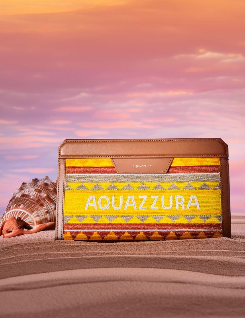Colorful bead embroideries with natural and earthy shades define the AQZ Slide, Tote and Pochette collection. Summer must-haves.