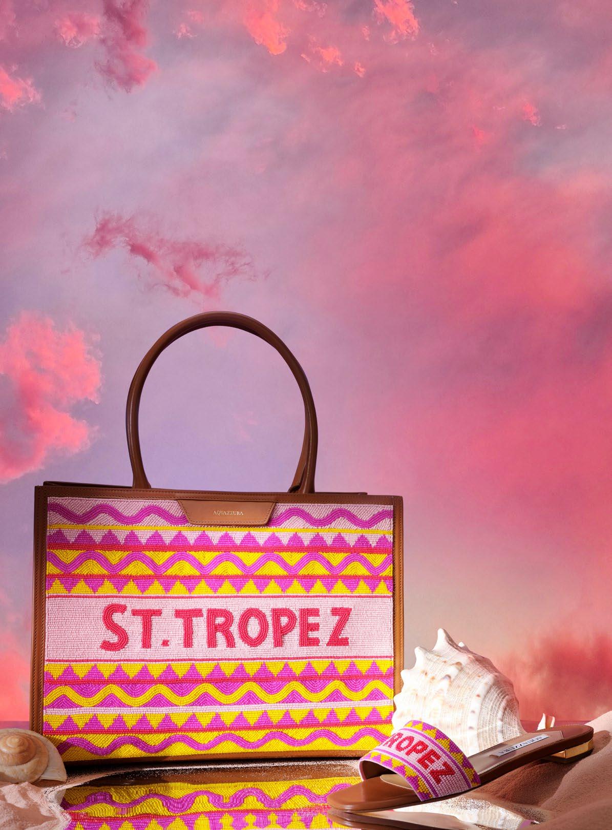 Enjoy summer with the new capsule collection of shoes and bags dedicated to the most iconic seaside destinations of Aquazzura: St. Tropez and Capri. The brand celebrates the opening of the new boutique in the French Riviera with this collection of totes, pochettes and flats with refined, colorful bead embroideries.