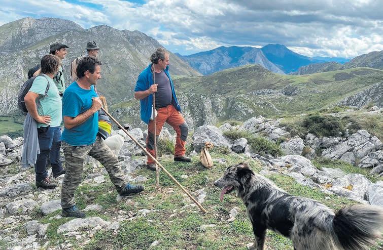 El manejo de las rutas Sobre el privilegiado balcón de Cito res, Luis Osuna es el portavoz de las casi 50 personas que han ascendido a los 2.181 metros de la emblemática Peña y que lo escuchan en un lugar hasta ahora inexplorado por este gru po: “Habíamos venido varias veces, pero nunca habíamos llegado al Re fugio”, reconoce. Antes de empren der la bajada, camino de la llamada “plaza de toros” del collado, bastión republicano en tiempos de la Guerra, para después afrontar el precioso des censo a media ladera que conduce de vuelta a Cotos, primero entre piornos y pedregal, y después bajo un impo nente bosque.