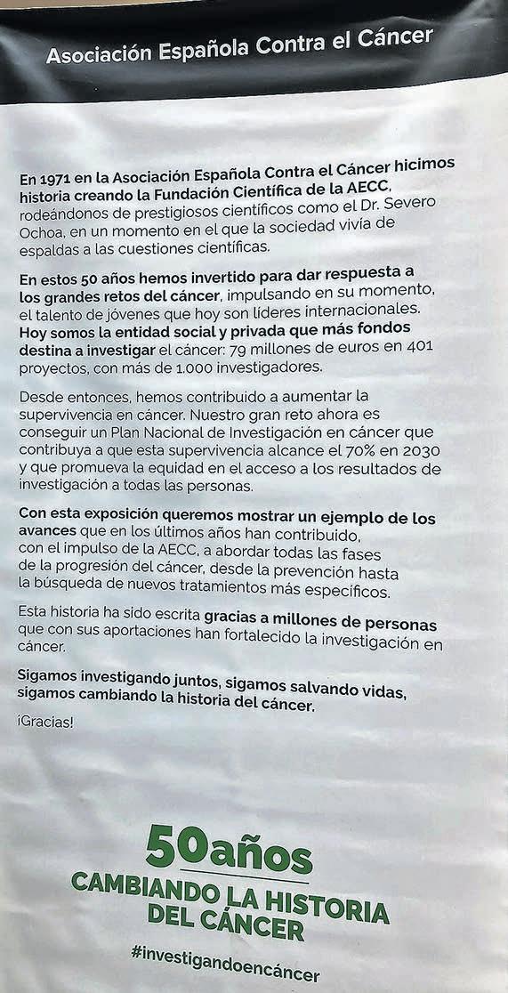 “Para nuestro hospital, es un orgullo y un honor acoger esta exposición con motivo del 50 ani versario de la Fundación Científica de la AECC, que contribuirá a dar a conocer la investigación en cáncer en la sociedad, a crear cultura cien tífica al respecto y a visibilizar el trabajo de la AECC en investigación”, dijo el director asisten cial del centro al inaugurar la muestra.