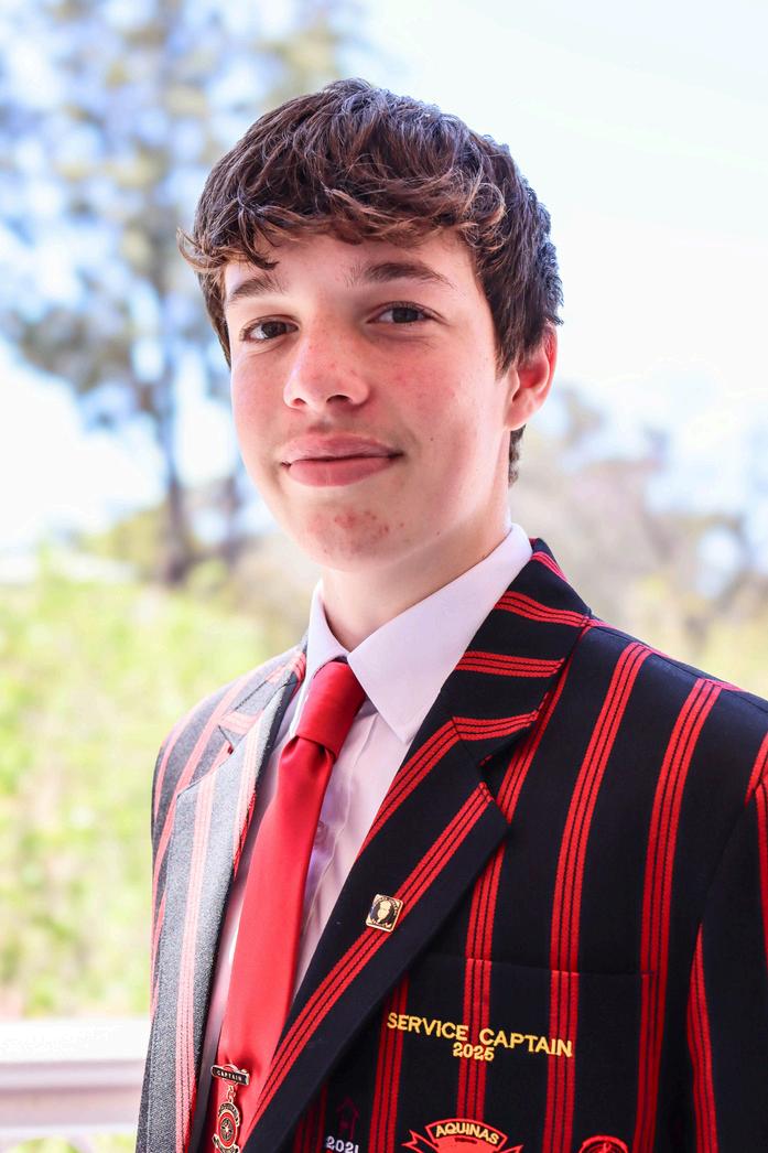 I am Zachary Bower, the 2025 Service Captain. I participate in Rowing and was training with both Cross Country and Badminton over the winter season. I also engage in many co-curricular activities as apart of the College. This includes the Law Society Mock Trials, Model United Nations and Interschool Debating, while also getting heavily involve in both the Service and Arts of Aquinas. I have also achieved Service Honours along with being a part of Middle School Choir, Percussion Ensemble and Intermediate Concert Band, over my years at the school. One of my favourite things to experience is travelling. I enjoy going to new places to see differing cultures and customs of the world. This passion has made me a well travelled person whereby I have visited 20+ significant cities both Internationally and domestically, with many smaller towns along the way. My most recent significant travel experience was to the Philippines as part of the Immersion, where I went to indulge in the rich Filipino culture and serve regional communities with a group of 12 boys.