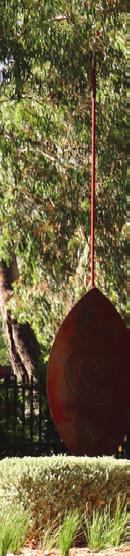 Artistic and educational initiatives further express this relationship: the Indigenous sculpture featuring four shields and spears at the front of the College symbolises the significance of Dyarlgarro as a traditional gathering and teaching place for boys and men, while the Mural On Country in the Angelicvm, created by Indigenous students, features the Waugal and integrates boomerangs with the College crest, visually merging Christian faith and Aboriginal spirituality.