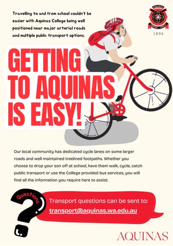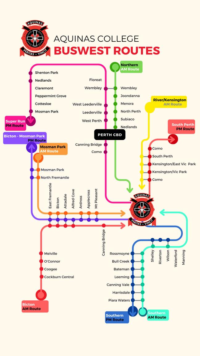 Aquinas College is a Transperth participating school that automatically processes Student SmartRider applications for all new students from Year 4 onwards. The College receives the cards and issues them to students. The timeframe takes approximately three weeks from commencement at the College.