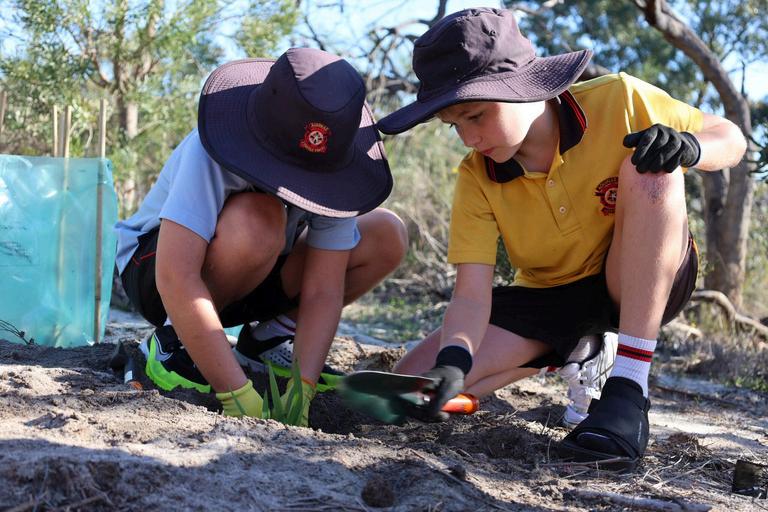 By the second half of Term 2, our Thursday after-school bush carers operated like a well-oiled machine. After putting in the hard work over the first weeks to prepare their planting site, the boys found it very rewarding to finally get stuck into digging holes and putting our native seedlings into the ground, which were ready to establish their deep roots with aid of the winter rains.
