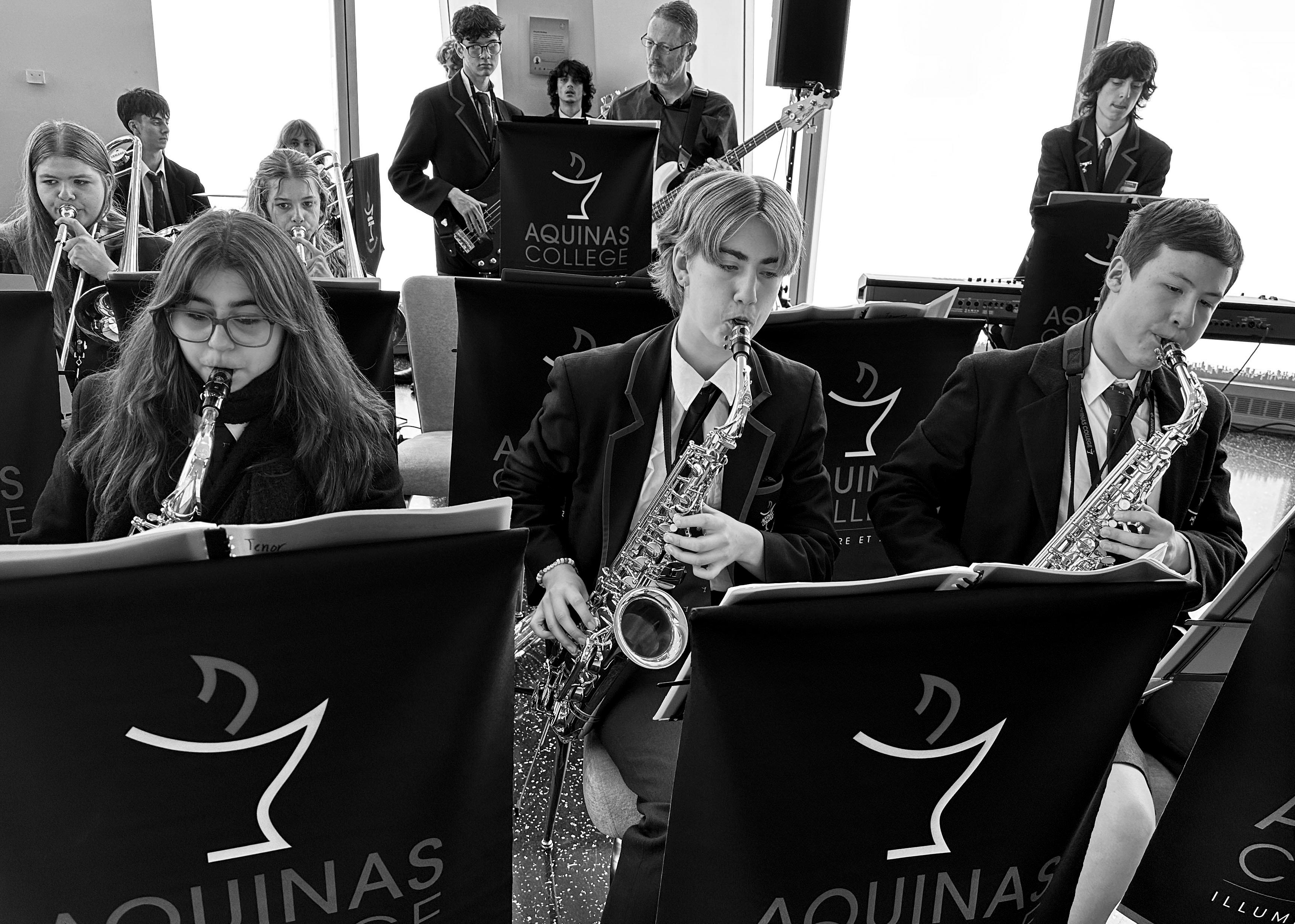 The students also had the incredible opportunity to spend two days immersed in Cardinal Spellman High School, a Catholic School in the Bronx. They experienced life in an American school (with the cafeteria providing a highlight for many!), connecting and rehearsing with the local students. Our visit culminated in unforgettable performance as a combined Aquinas-Spellman band to rapturous response that included the Spellman audience swaying along with the anthemic ‘You’re the Voice’ and a standing ovation (which can be viewed here). My thanks to Spellman staff (especially President Dan O’Keeffe and Head of Music Chris Bonner) and students for their incredible welcome and truly memorable experiences for our students and staff.