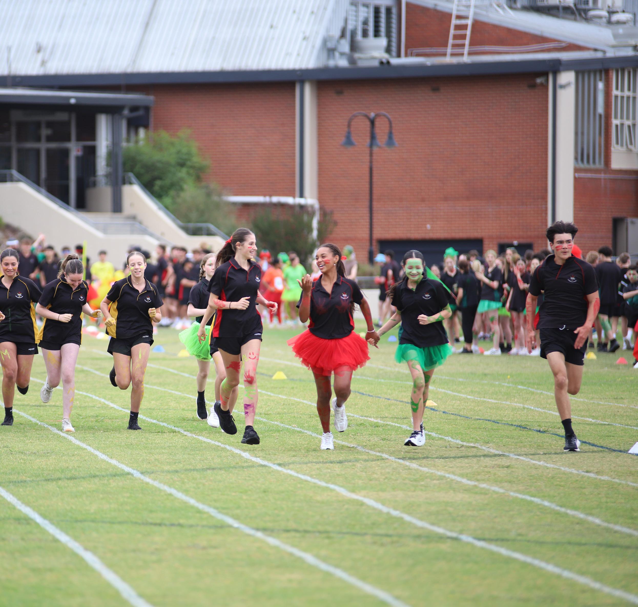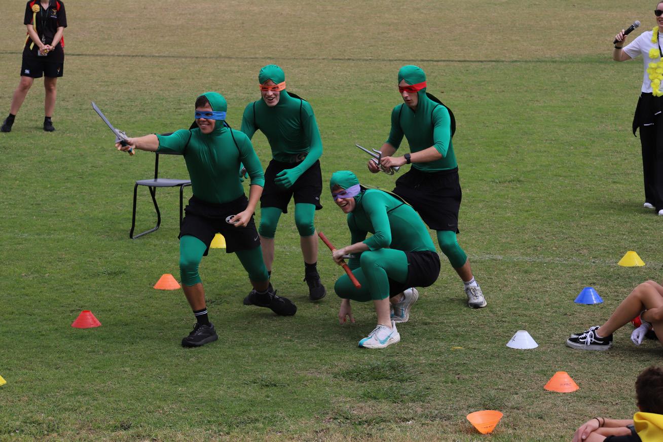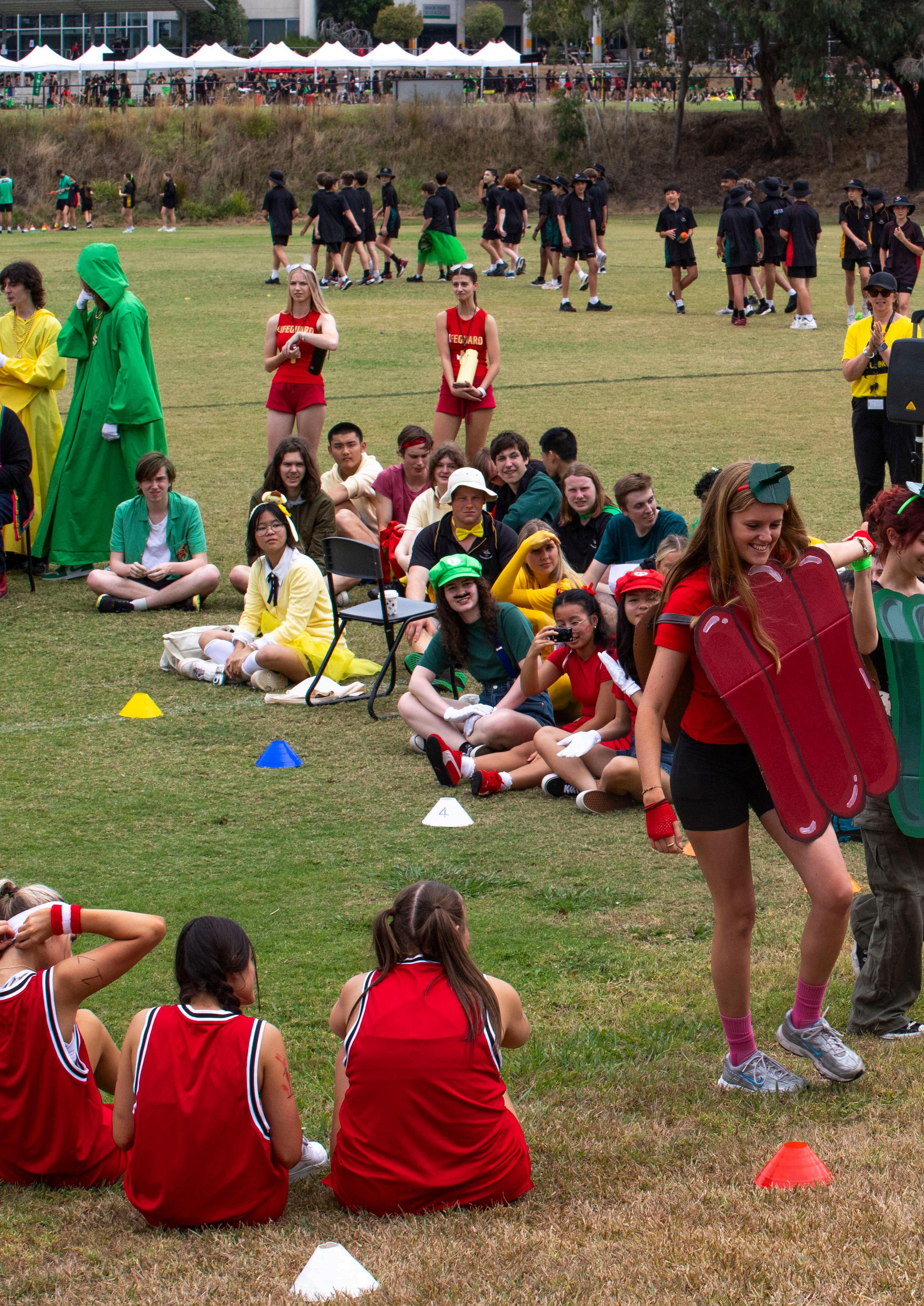 The atmosphere was electric and the ovals transformed into a vibrant sea of red, yellow, and green, as students proudly wore a touch of their house colour. The event was made even more special by the Year 12s, who were given the opportunity to dress up in full costume for their house. Their creativity and enthusiasm shone through, and their outfits were put to the ultimate test in the highly anticipated Fashions of the Field competition, where style met sportsmanship.