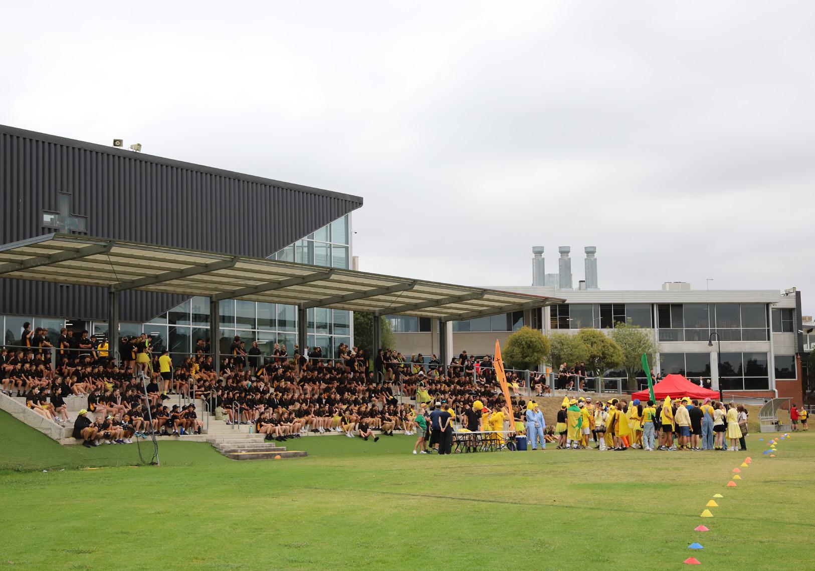 was electric and the ovals transformed into red, yellow, and green, as students proudly their house colour.