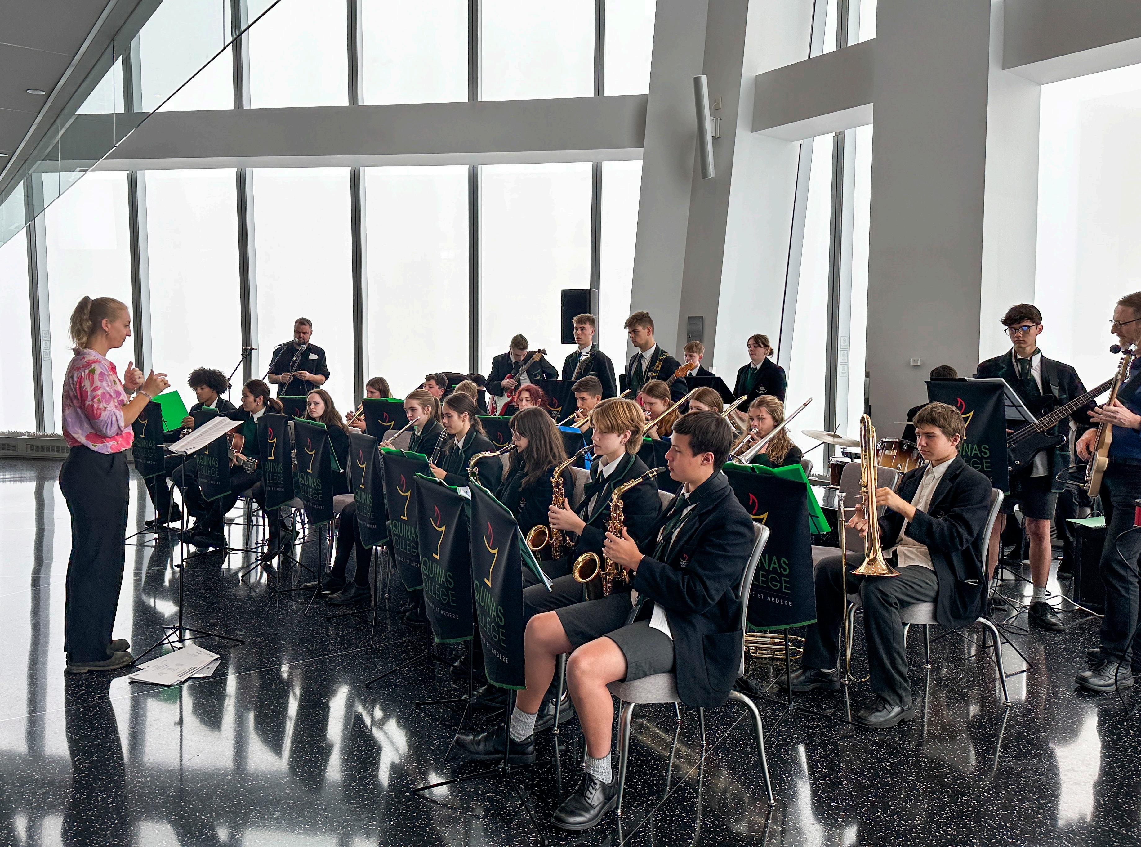 At the end of Term 1, I had the privilege of accompanying 40 of our amazing Aquinas College student musicians with four wonderful music staff on the 12-day Aquinas USA Music trip. The tour of New York and Los Angeles was an amazing blend of high quality music performances by the students, sightseeing, a Broadway show, flights, American cuisine –and lots of walking! Performing at venues such as the Empire State Building, the 100th floor of the One World Trade Centre, the deck of the USS Intrepid, St John the Divine