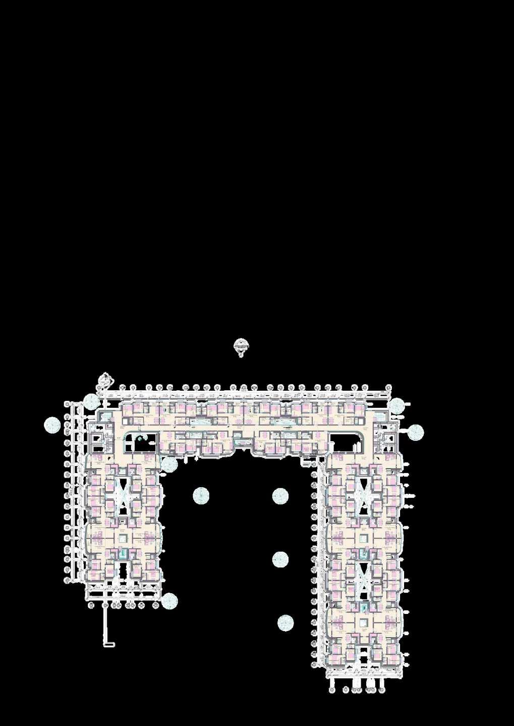 To aid proper ventilation and lighting within the block, many 2 large voids on either side of the connectingcorridorwereadded