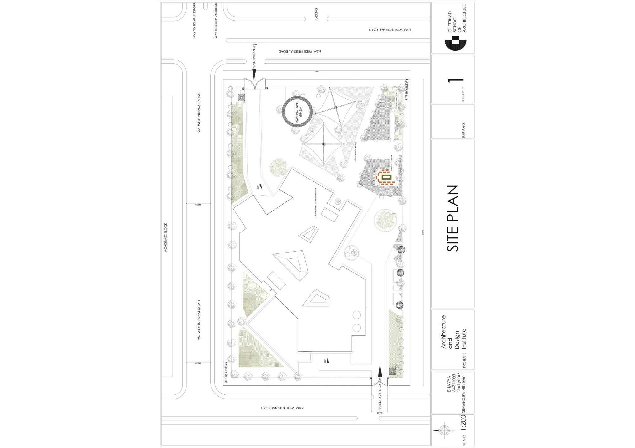 The site was rectangular in size, the main entrance and exist was decided to be able to facilitate movement for both the day scholars as well as the hosteler, hence the entry and exits are kept on the opposite ends of the site.