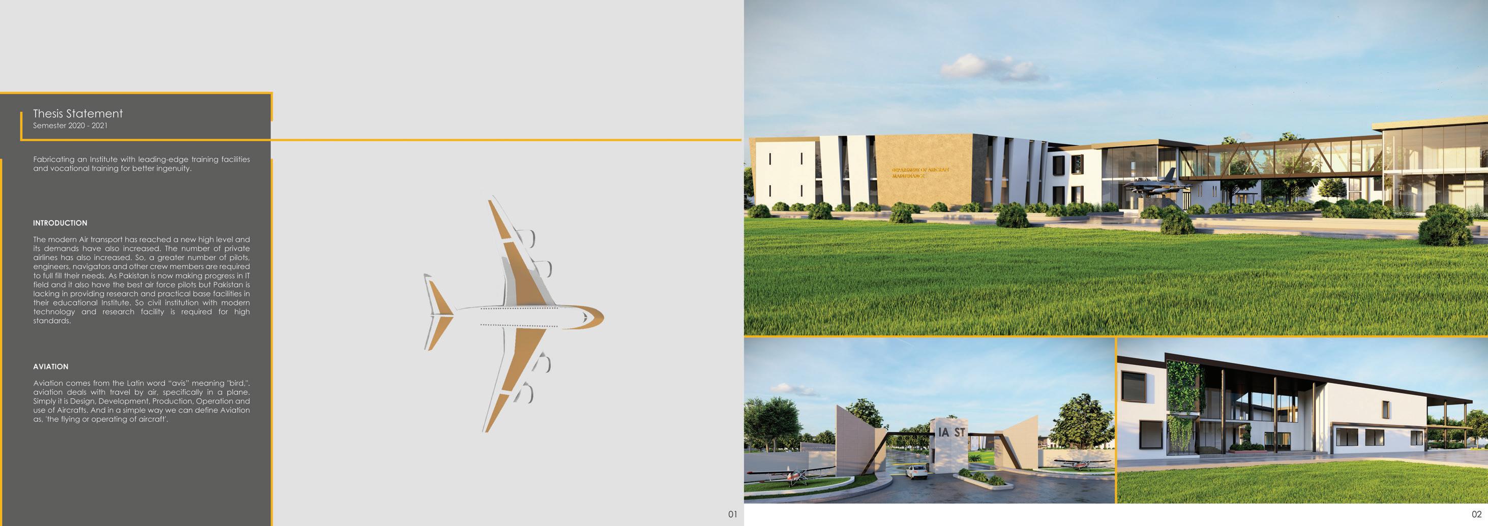 This portfolio presents my comprehensive thesis project, focusing on the design of the Institute of Aviation Science and Technology. The project aims to create a cutting-edge educational facility that fosters innovation and excellence in aviation studies. Through thoughtful architectural solutions, the design integrates modern learning spaces, sustainable practices, and a user-centric approach, ensuring a seamless blend of functionality and aesthetics. This project showcases my design philosophy, technical expertise, and commitment to creating adaptive, future-forward environments in the academic and aviation sectors.