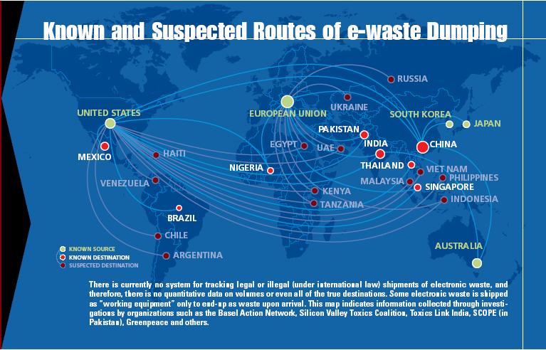 • E- Waste is routinely exported by Europe, US and Japan to Asian countries