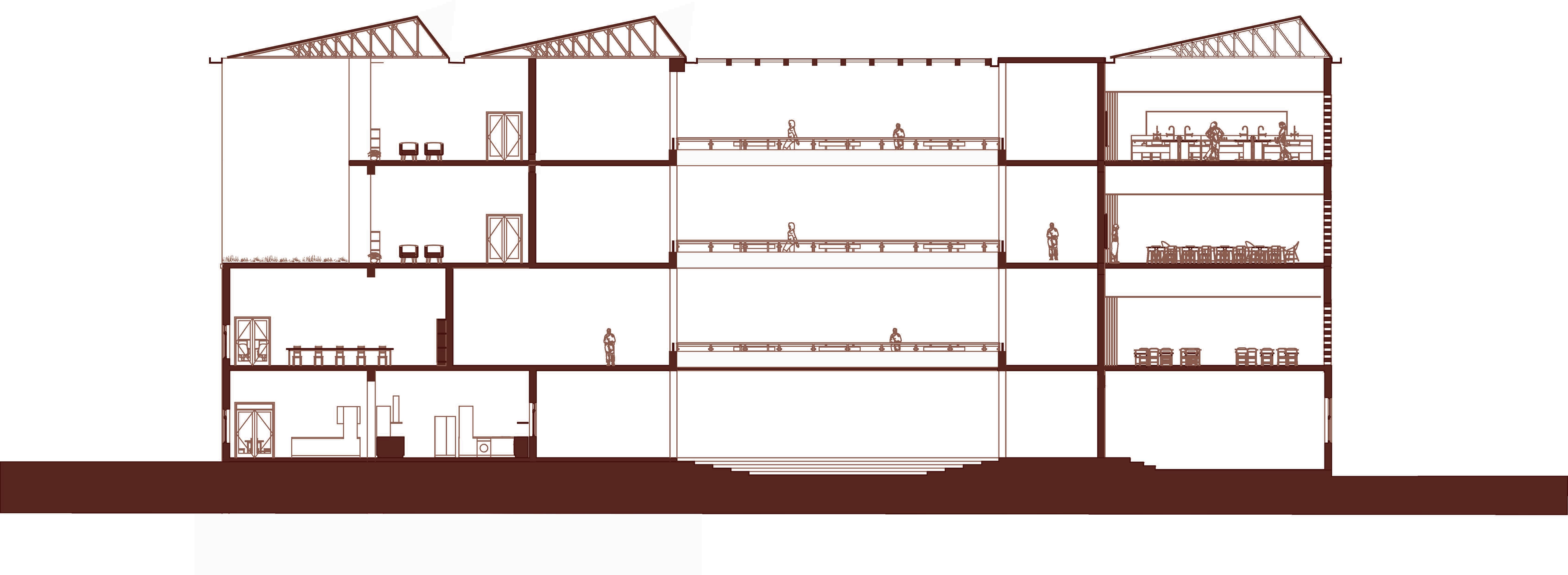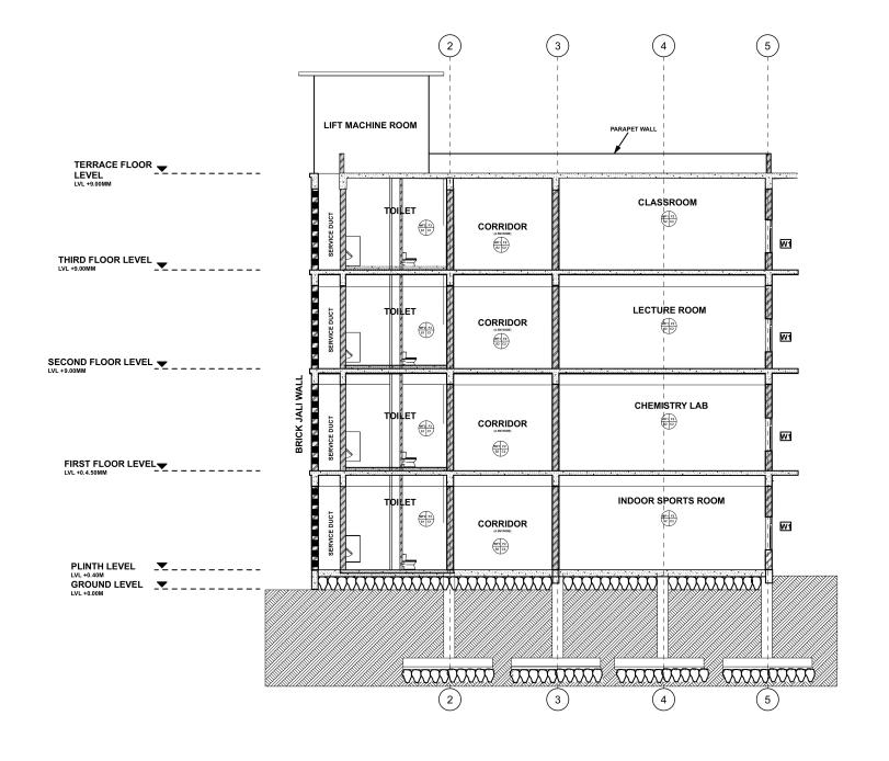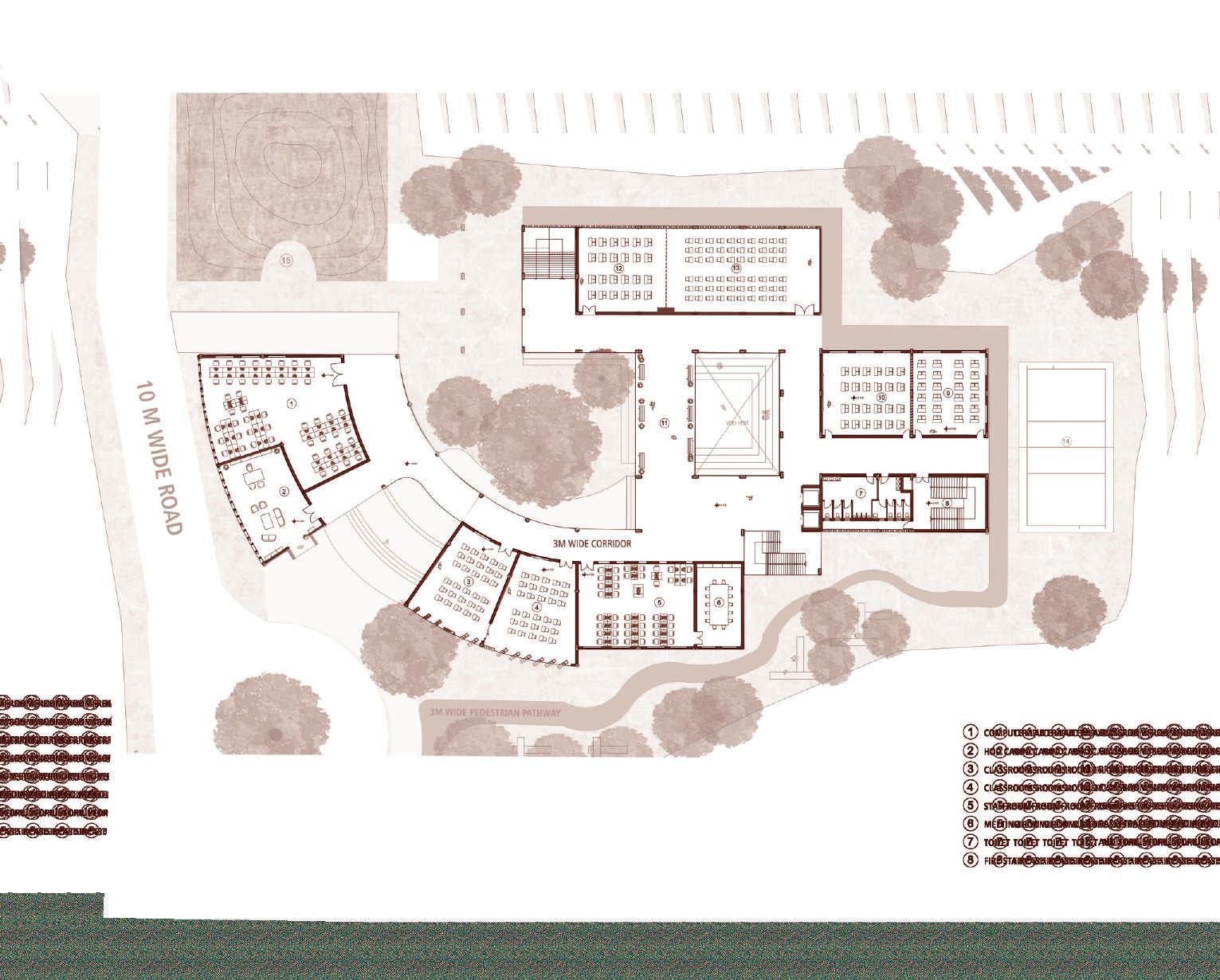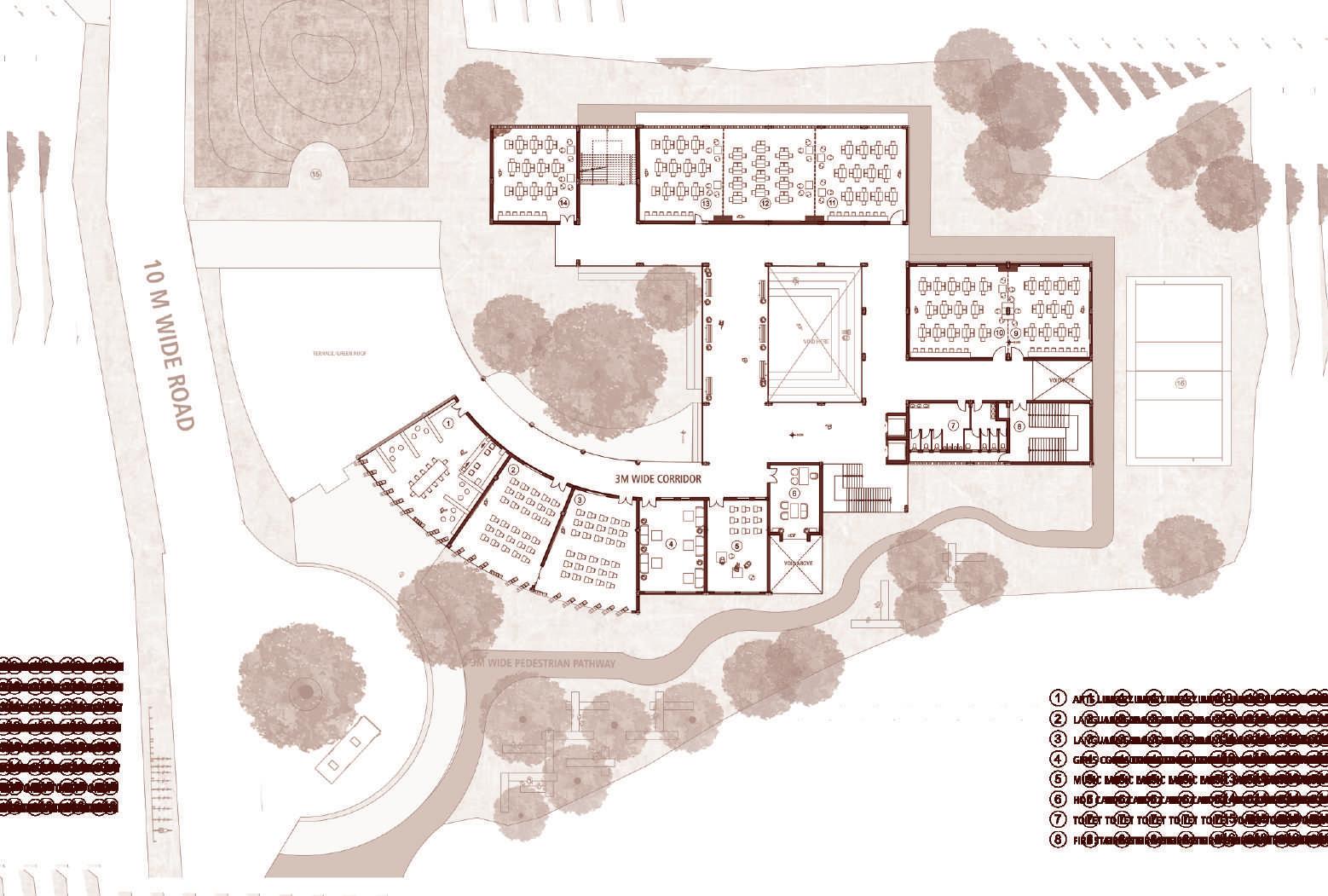 Library + Workshop Administration Ofce + Principal’s Cabin.