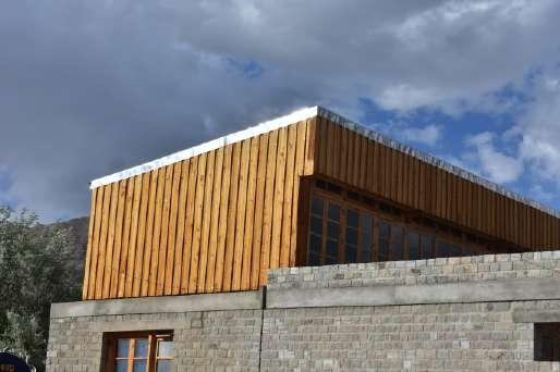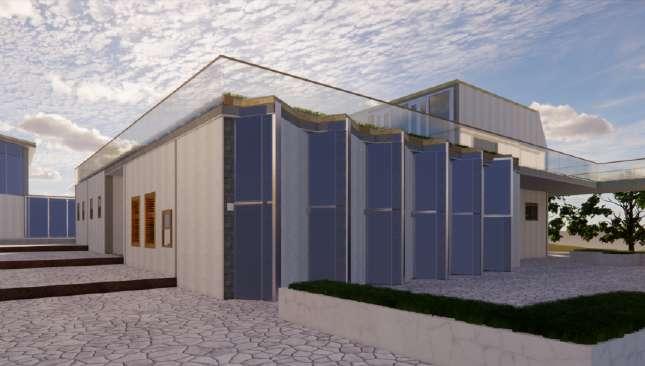 Ver ality of the design results in minimal carbon footprint. Water resources are available by crea n water channels and guters connected to the roof which collects the water below the structure and is used as required.