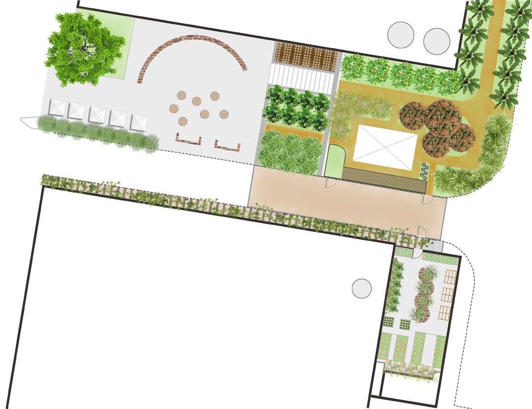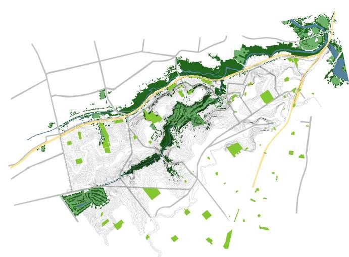 The locations of the existing trees form clusters which can be converted into habitat islands for local flora and fauna.