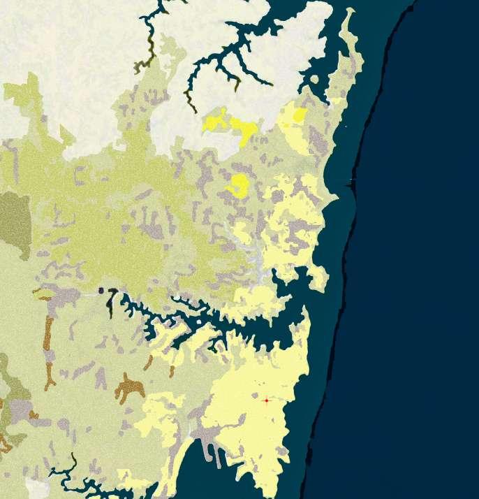 As the map shows, there has been a major loss in biodiversity (around 1952), which is the time when Sydney airports construction was commenced. The mouth of Cooks river was diverted and the landscape suffered great loss of the mangrove habitat and mud flats which were construction ground and temporary transport networks.