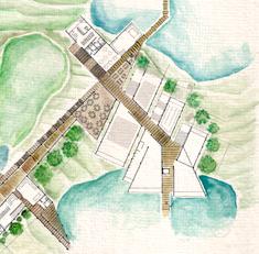 An exhibition alley connects the three quarries at a common space and acts as a thoroughfare through the entire terrain.