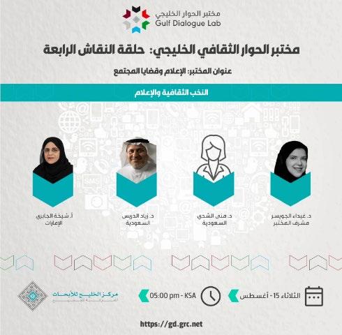 The Gulf Dialogue Lab hosted a symposium titled: Cultural Elites and Media. The session was moderated by Dr. Ghaida Al-Juwaiser.