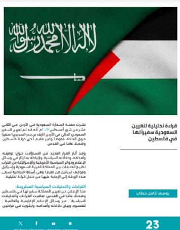 An Analytical Study of Saudi Arabia’s Appointment of its Ambassador to Palestine