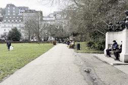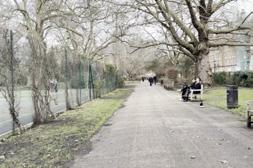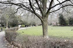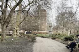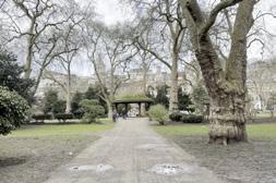 Lincoln’s Inn Fields is largely flat in topography, characteristic of the surrounding Holborn area. The open lawn is gently graded for drainage, but the ground plane remains uninterrupted.