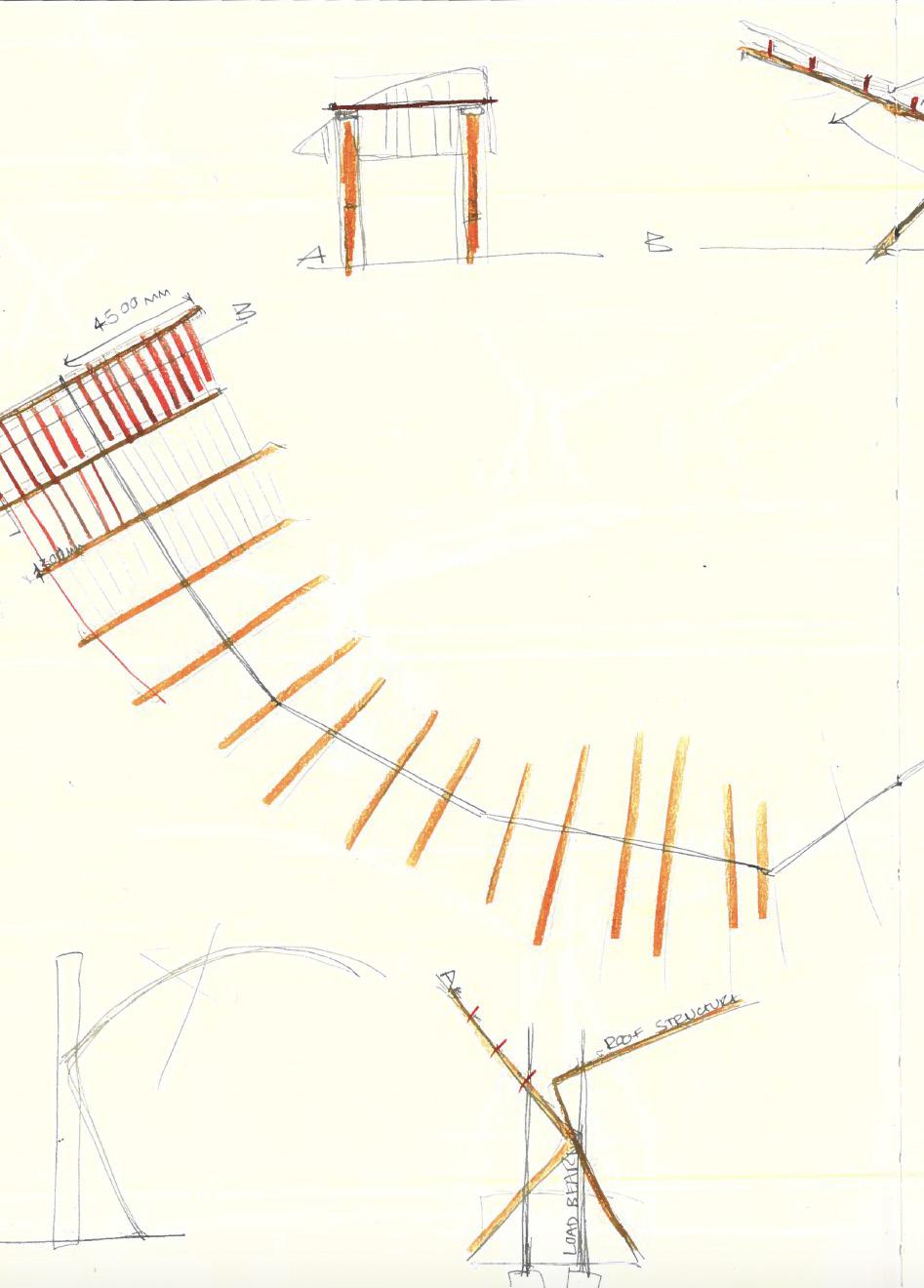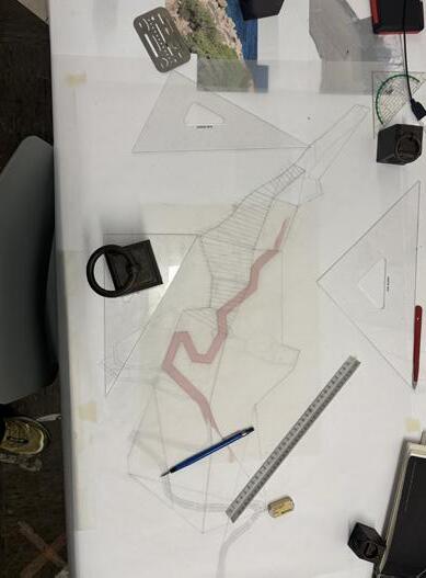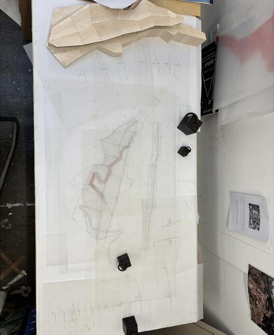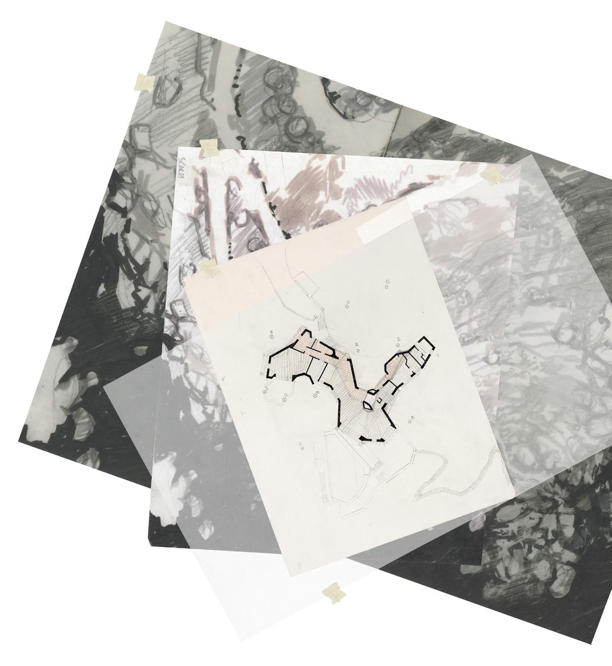 The nature of the studio was brought to the site. As with the study of Casa Scalesciani, a similar approach was applied, the site was filmed while moving through its pathways, allowing movement to inform an initial understanding of how the park was occupied and used. This filmed material was then brought back to the studio in Edinburgh, becoming a new drawing tool through which the site could be studied, reinterpreted, and aligned with ongoing investigations into archival work.