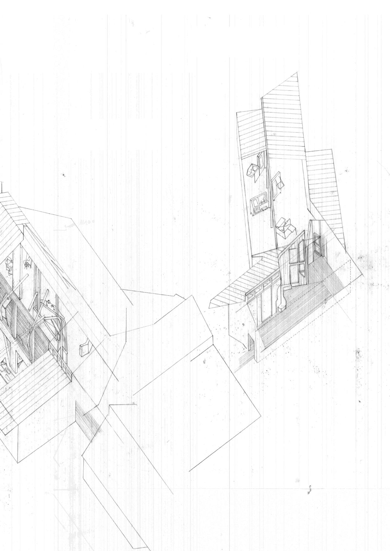 At a smaller scale, the proposal continues its exploration of archival material through the inhabitation of a building envelope. Three buildings work in conjunction to form a unified annexe for Drawing Matter and the Architectural Association. The tectonic response of Second Occupancy enriches the spatial and material conditions, creating a layered environment for discussion, production, and presentation.