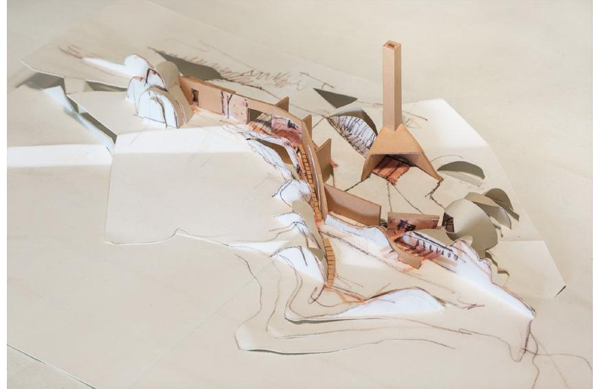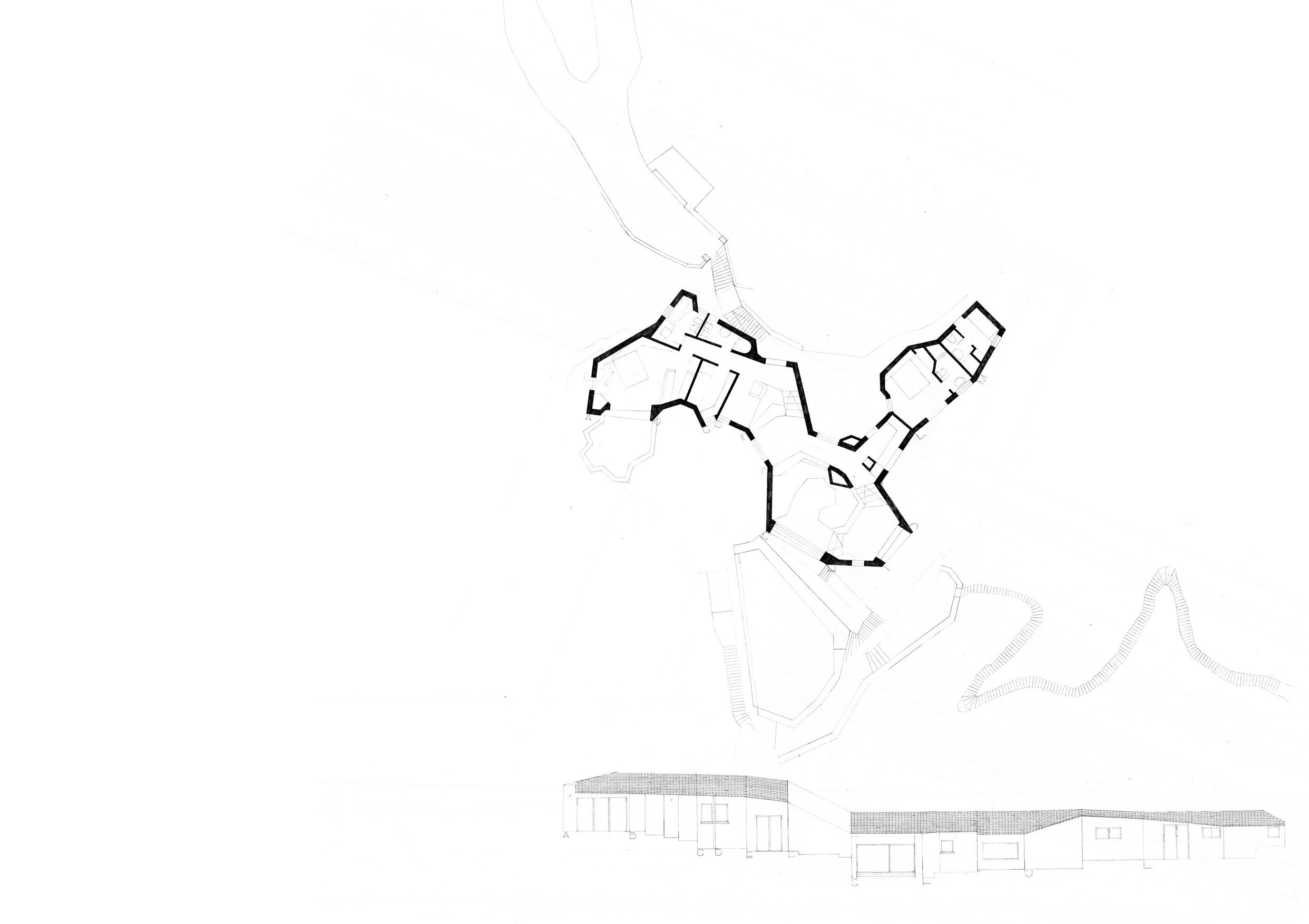 In line with the process proposed by Marius Grootveld for the original exhibition, modelling and drawing Casa Scalesciani served as a way to understand the vernacular design strategies employed by Alberto Ponis. Studying Ponis’s existing sketches informed a reconstructed plan of the house, including its driveway and staircase, elements that carve into the terrain and establish pathways between the architecture and the surrounding landscape.
