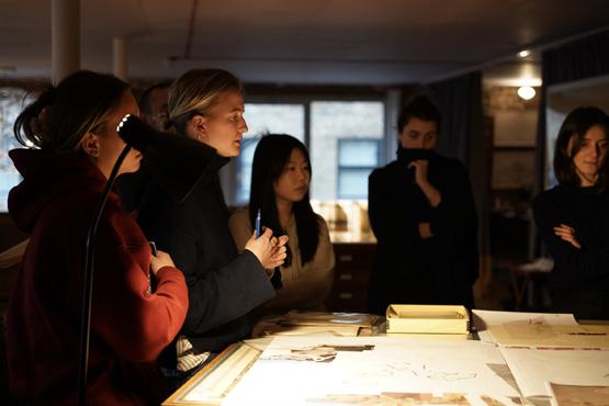Students from the Architectural Association arrive at the annexe for an intensive five day workshop. An initial orientation is held, introducing students to the archive’s handling protocols, the structure of the collections, and the significance of the selected materials they will be studying.