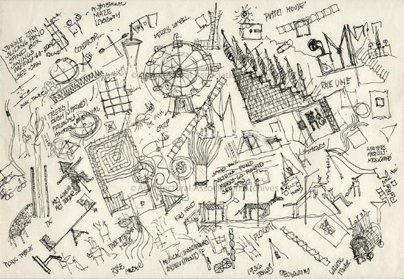 Cedric Price, (Fun Palace Project), 1959-61. Imprint, folded 208 x 298 mm.