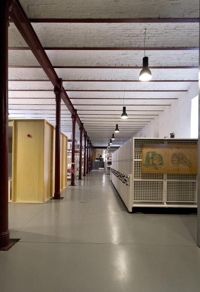 The central archive building houses a main archive, research rooms, computer and library spaces, display tables, a large goods lift for transporting oversized items, and a detailed archive facility for the sorting, storage, and cataloguing of works.
