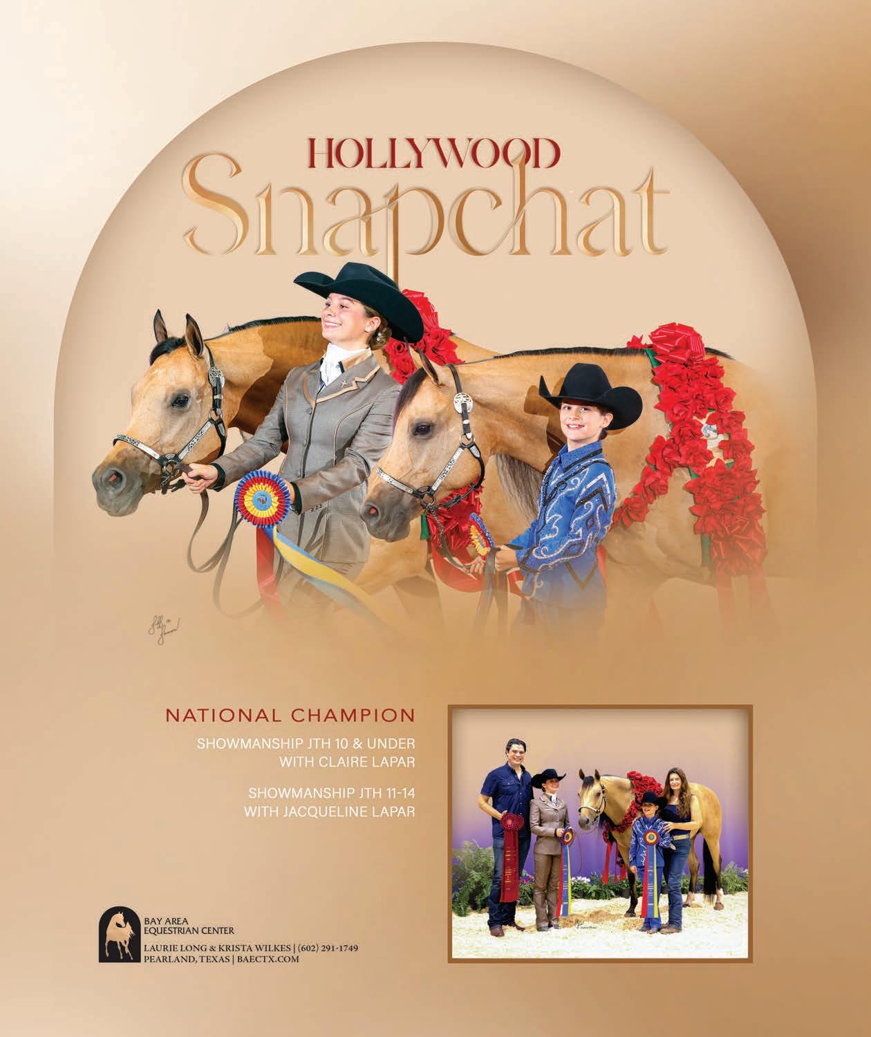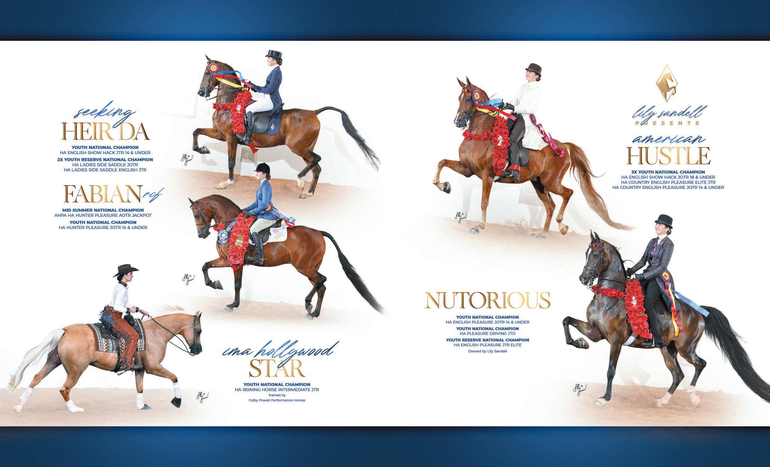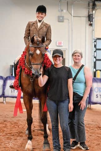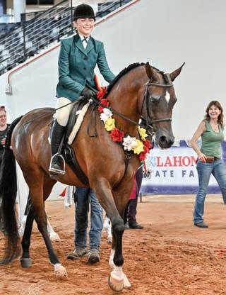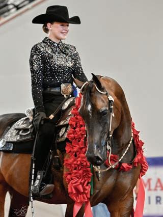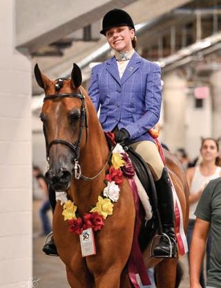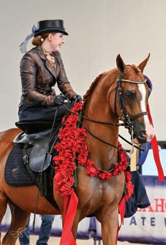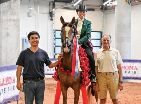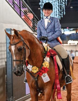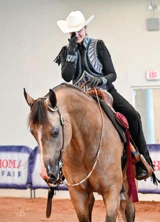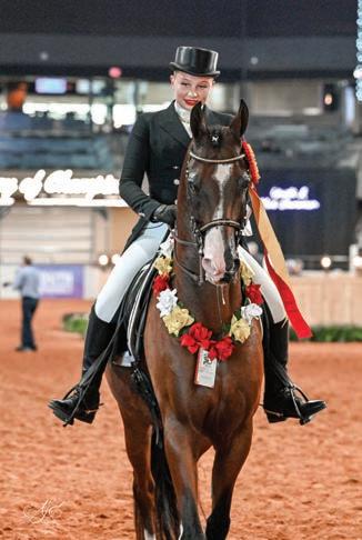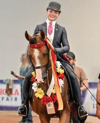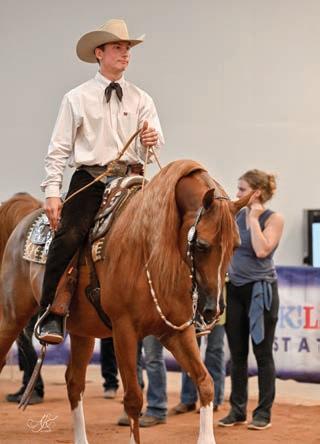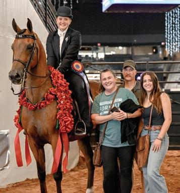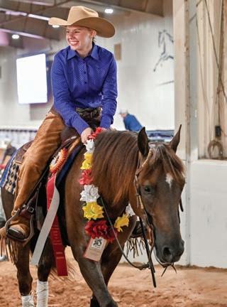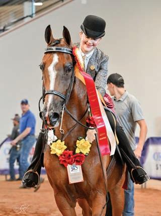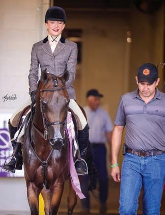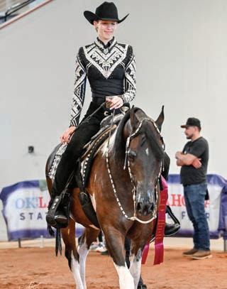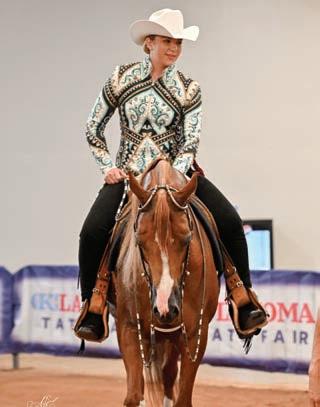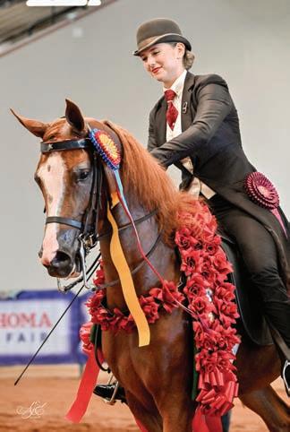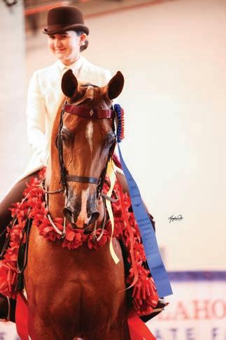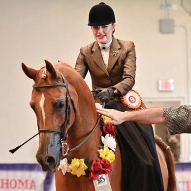 e lights were sparkling for all exhibitors and attendees in the new OG&E Colosseum at the Oklahoma City State Fairgrounds. Only in use for a couple months, this beautiful new arena housed the main ring performance classes where national championship titles were crowned in hunter pleasure, western pleasure, saddle seat, and specialty divisions. All the exhibitors appreciated having an updated and modern new arena to show in. e Performance arena was one of the busiest as it held the ever growing working western classes including ranch, reining, and trail. Across from the Performance ring, the jeans and hats were swapped for breeches and helmets at the Specialty arena where there was a constant ow of sport horse, dressage, equitation, and jumping classes. What makes this show so appealing to exhibitors is the wide range of division options o ered, as well as classes for youths, amateurs, and professionals. It’s a great option for families to show together and is a one-stop destination for a chance at a national title in every division you do.