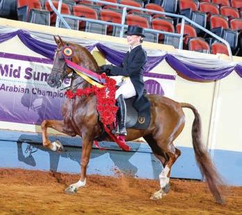 While class sizes didn’t have too many cuts throughout the week, the caliber of horse and rider teams still made it very clear that this was a national level competition. e hunter classes remained the biggest with some of the country, ranch, and dressage classes also bringing in large numbers. It was reassuring to see the fairly even spread of numbers throughout each arena. And regardless of class size, it was always a beautiful group of Arabian horses being presented which is a real testament to our industry’s breeders and trainers creating this level of horsepower.