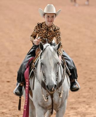 With all the anticipation and minimal preparation, the screams from the crowd were almost deafening and Maddix and e Cool Kid SF were named national champions of the HA/AA Western Seat Equitation Walk/Jog 10 & Under. It felt like the whole fairgrounds and everyone watching from home was cheering Maddix on in this moment. For so many reasons, many screams and happy tears were had in this moment, least of which being that this was Maddix’s rst nationals and Ace’s rst walk/jog class!