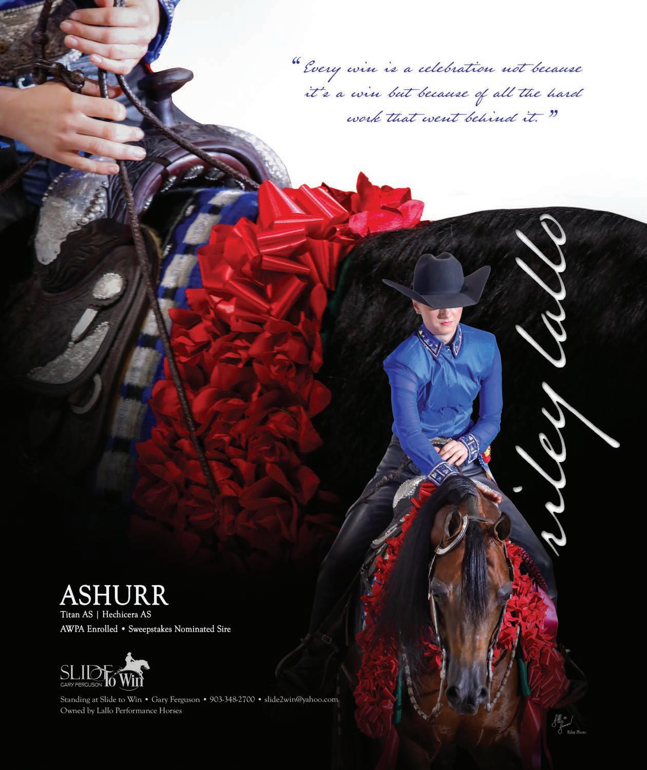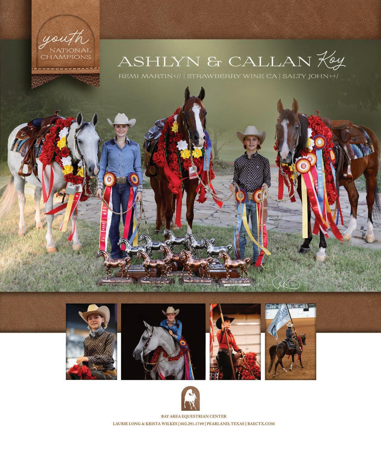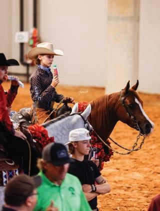 As this year’s summer nears its end, it’s time to re ect on a great season and look forward to next year’s Youth Nationals, where strengthening our bonds with our horses and reconnecting with horse show friends is the highlight of the year for many. It’s also a great opportunity to witness incredible young talent that will shape the future of the Arabian breed. eir dedication as the next generation of Arabian horse owners and spokespeople ensures the breed is in great hands!