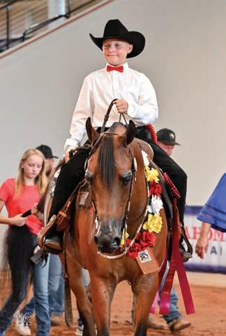 Even though there were some new adjustments with the old Jim Norrick arena not yet torn down all the way, the show generally ran very smoothly. A plethora of activities were o ered to entertain the kids like a scavenger hunt, stick horse class, and golf cart parade, and in the arena, there was the annual dog costume contest and dog races that are always a popular event. New and fun this year were the addition of an “egg-and-spoon” and” ride a buck” exhibition classes that were very entertaining! Of course, it was the typical hot Oklahoma summer but the new arena was a great place to cool o while also getting to watch some classes. Also present was the AHA Chill Box where kids could go cool o and play games and activities together in between showing. One evening, graduating seniors were all honored and celebrated their scholastic achievements, as well as the completion of their youth careers.