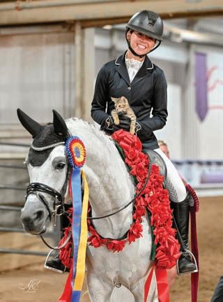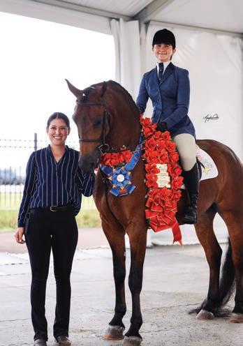 Top rose earners were some of the show’s most memorable highlights, including Lily Sandell, who had a standout show winning 12 championships or reserves on her ve horses; Logan Grinton winning four national 10 & under championships across three di erent divisions and two arenas, and all with di erent horses (the future is bright for this young lady!); and in the western arena, sisters Isabella and Emilia Sobral raked in 13 sets of roses together across multiple western divisions including ranch, trail, showmanship, and horsemanship. Not to be outdone, Alexis Forster went home with a whopping 23 rose garlands from sport horse, dressage, equitation, and hunter over fences!