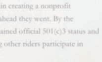 Neither had any experience in creating a nonprofit organization but full steam ahead they went. By the following year, they had obtained official 501(c)3 status and were on their way to helping other riders participate in Youth Nationals.