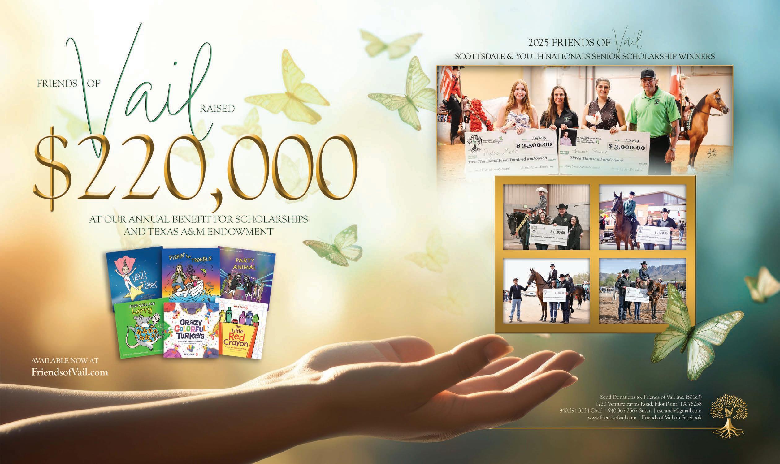 “ e outpouring support from the Arabian horse community has been nothing short of incredible,” Travis says. “I am truly grateful to be part of such a passionate and caring group. e friendships we build and the experiences we share are among the greatest joys in life.”