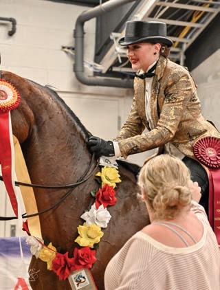 Whether exhibitors were leaving with roses, ribbons, or empty handed, the gratitude and sportsmanship really shone through with everyone being very congratulatory toward their fellow competitors and, most importantly, kind and gracious to their equine partners. ere were many pets and smiles at the out gates for a job well done. While achieving a rose garland is something to be celebrated and proud of, the accomplishment of getting to nationals and competing in the rst place is an impressive feat in and of itself!