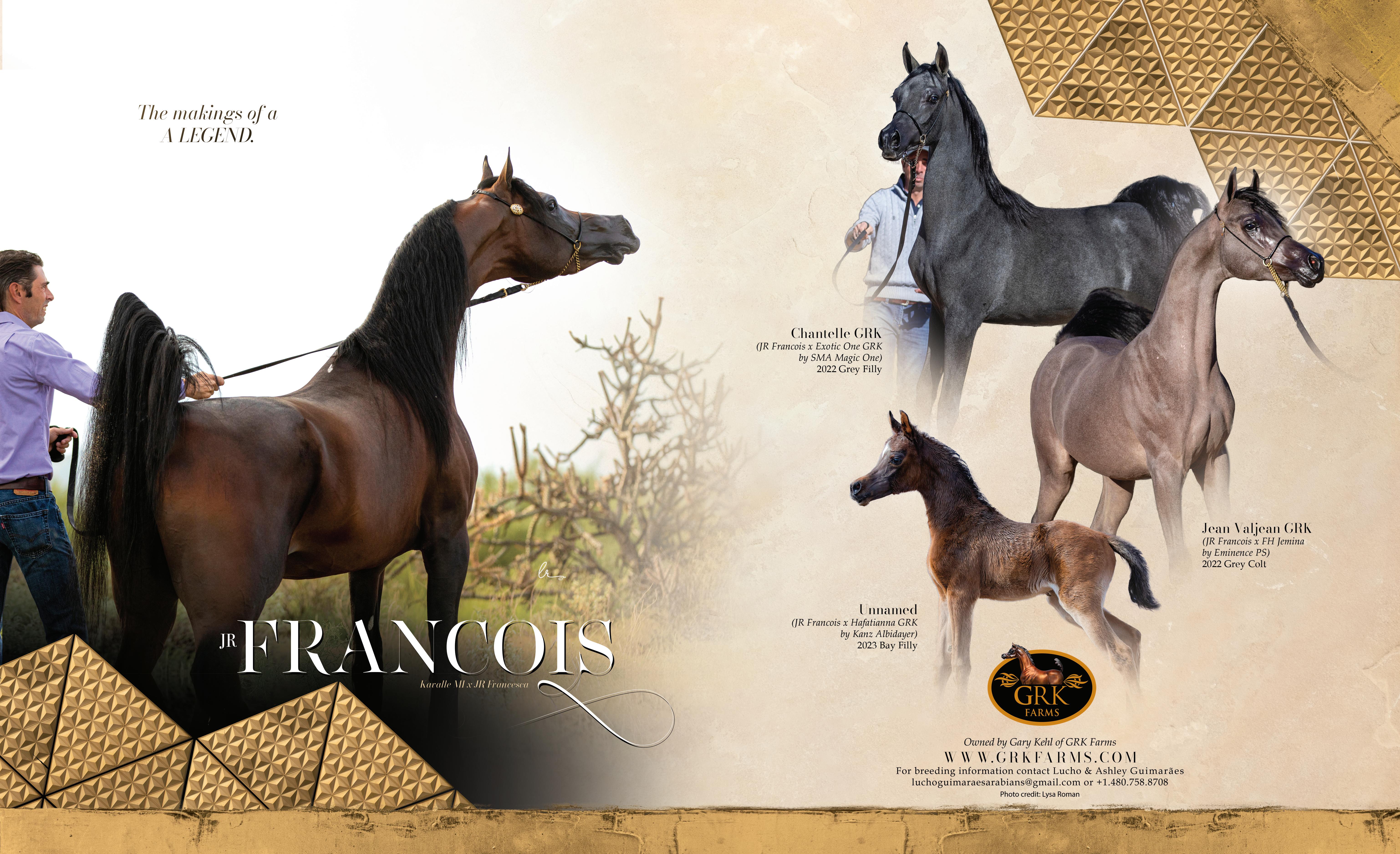time is Joel Desmarteau, of Markelle Arabians. He owns just a few horses, but he bred horses like Marajj, Elle Flamenca, and others who are not only world champions themselves, but are also producing world champions. He doesn’t get a lot of credit, but he has definitely been at the top for years. Abroad, there are a lot of great breeders, but for the last five or six years at least, Dubai Stud has dominated. They have bought the best horses and are producing the best offspring. When we first decided to let Exxalt out of our hands, we decided to trust Dubai Stud with him. They are at the top of the breeding world right now.