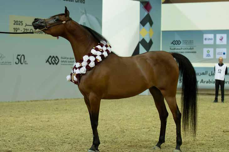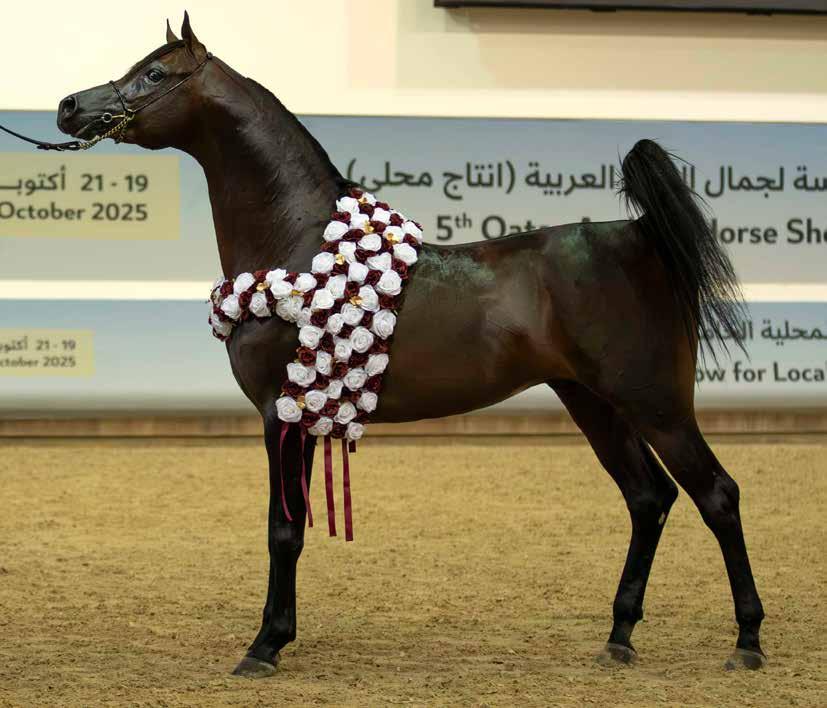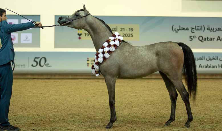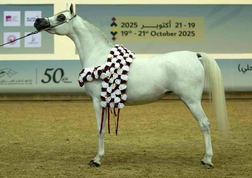 al with a commanding performance. The silver went to Al Ghariya Al Shaqab (Gazal Al Shaqab x AP Maraya by), owned by Nasser Mohammed Al Hajri and bred by Al Shaqab; while Madeeha Al Shaqab (Kahil Al Shaqab x QR Annah Ferrari by Enzo), representing H.E. Sheikh Hamad bin Ali Al Thani and bred by Al Shaqab, took bronze— marking the His Excellency’s third medal in the event, with two golds and one bronze overall. Mr Bader Mohammed Al Darwish, QREC Acting CEO, presented the trophies.