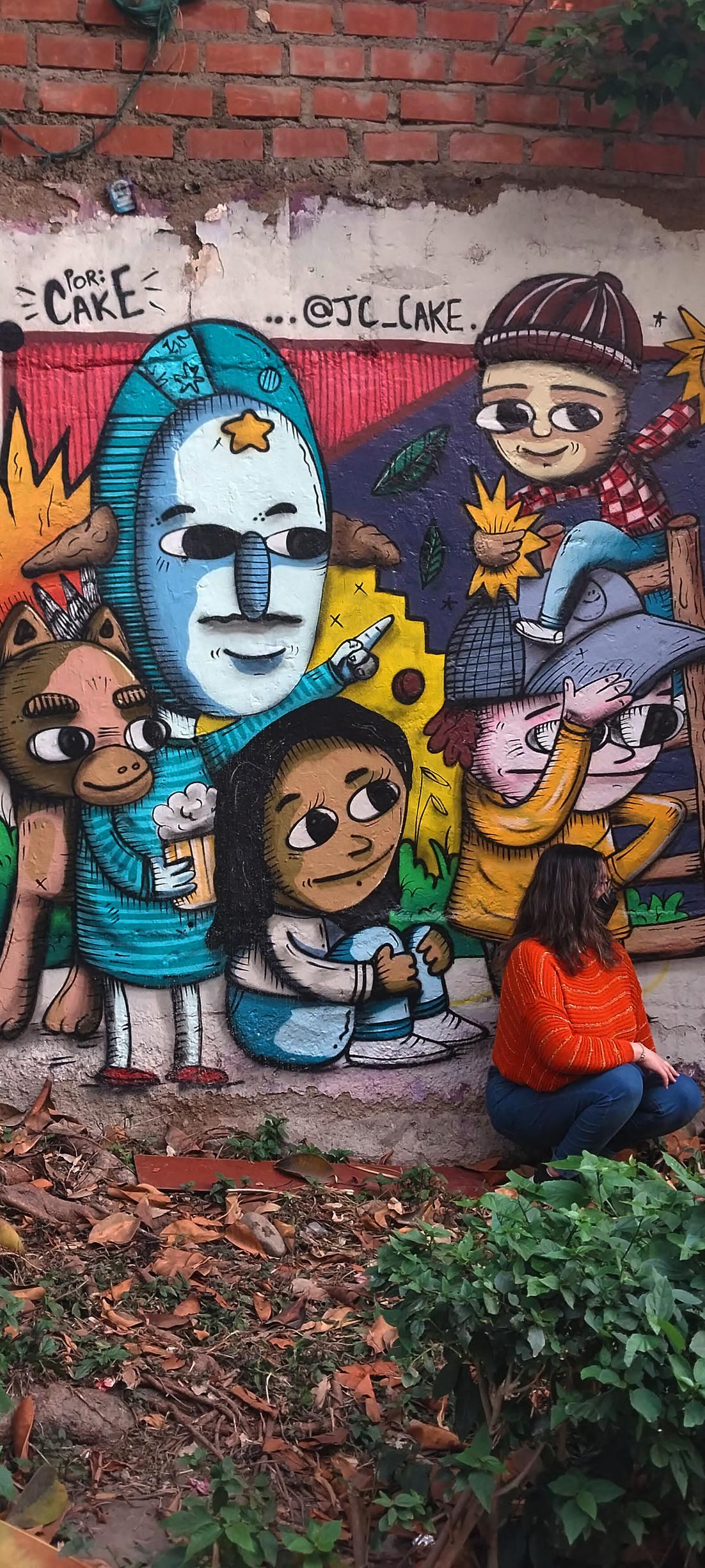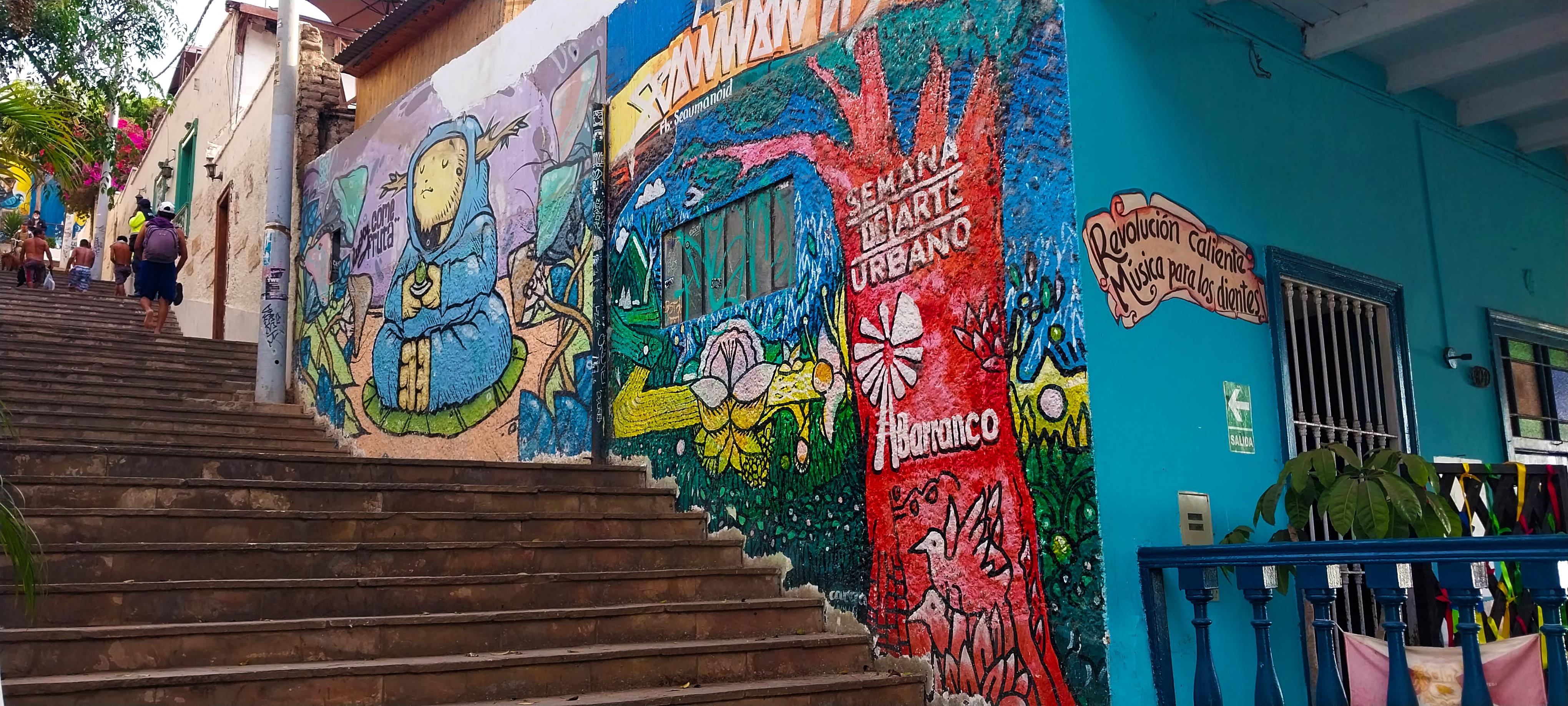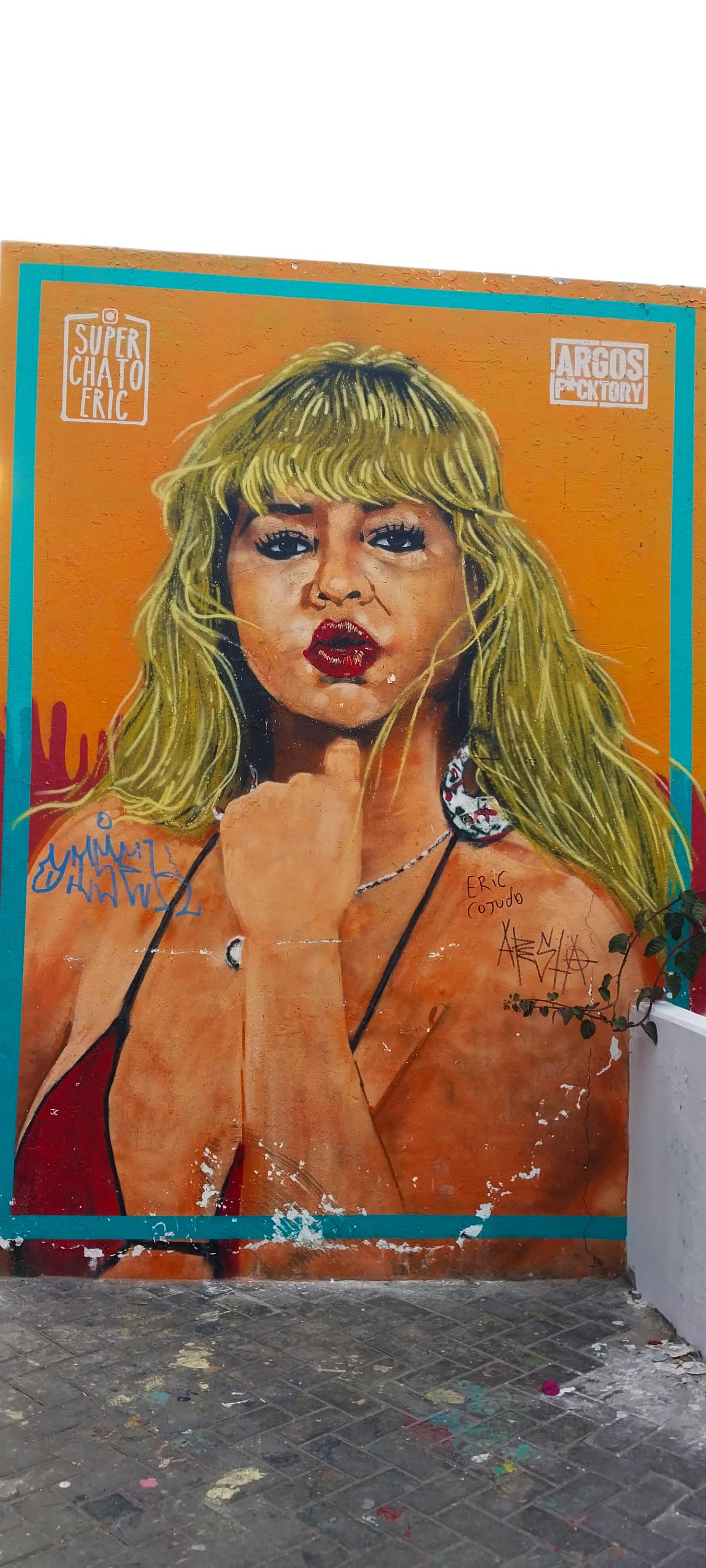 Una joven recorre las calles de barranco, donde se enuentran distintos murales artisticos que representan la cultura popular peruana, ella quiere acoplarse con las pinturas que ve, interactuando con estas.